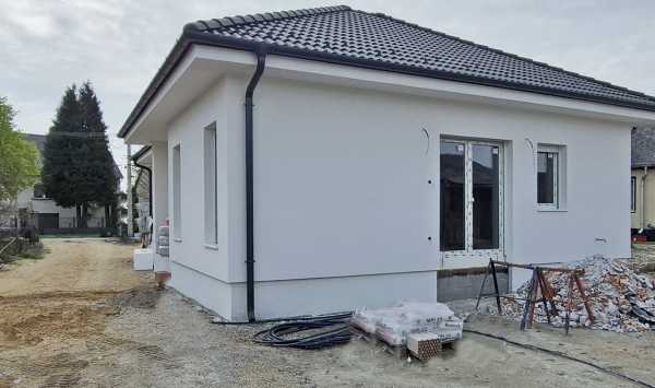 SZENZÁCIÓS AJÁNLAT! ÖNNEK! Győrtől pár kilométerre, a méltán kedvelt Győrújfalun kínálok most Önnek ÚJ építésű ikerházat. CSEND-JÓ LEVEGŐ-BÉKE-NYUGALOM és a VÁROS KÖZELSÉGE!! Kell ennél több? Igen! Kényelmes OTTHON. Ezt kínálom most Önnek. Győrújfalu klasszikus részén, családi házas utcában valósíthatja meg álmai otthonát. Spórolja meg a telek keresés és a megfelelő kivitelező megtalálásának nehézségeit. ITT A MEGOLDÁS A NYUGODT OTTHON MEGVALÓSÍTÁSÁHOZ. Megfelelő helyen egy korrekt és tapasztalt építő. Az L1 -es jelzésű - utcafronti - lakóház nettó 93,66 m2-méretű és kb. 517 nm saját- elkeríthető telekkel rendelkezik, saját közüzemi órák. Tökéletesen kihasznált terek, rendkívül praktikus elrendezés és magas műszaki tartalom jellemzi az ingatlant. Elrendezése: Előtér, amerikai konyha nappalival, kamra, 3 hálószoba, háztartási helyiség, fürdőszoba WC-vel, külön WC. A házhoz 17 nm-es tárolóhelység kapcsolódik. Ezzel van összekötve a L.2-es jelzésű lakóházzal. Tartozik még a lakáshoz egy térkövezett kocsibeálló is /melyet az ár tartalmaz/. Előrehaladott kivitelezés. . Külső REHAU nyílászárók beépítve, vakolható redőny tokkal /majd redőnnyel és rolós szúnyoghálóval/ Villany alapszerelés Belső vakolás elkészült. Műszaki paraméterek: 30-as POROTHERM tégla teherhordó falazat, 10 cm-es válaszfalak Szeglemezes tetőszerkezet, a födém- 30 cm-es szigeteléssel, Terrán antracit beton-cserép fedés Homlokzaton 15 cm hőszigetlés Hőszívattyús fűtési rendszer, padlófűtéssel. Műanyag - hőszigetelt nyílászárók 3 rétegű üvegezéssel - 5 légkamrával- vakolható redőny, rolós szúnyogháló Tereprendezés. Energetika: BB besorolás Terasz opcionálisan kérhető! Praktikus elrendezés, profi kivitelezés, elérhető áron! A Győrtől 7 km-re lévő település egy ragyogó választás a családoknak.Teljes infrastruktúra elérhető. A város nyújtotta lehetőségek akár kerékpárral is elérhetők. Emelt szintű fűtéskész állapotban kerül átadásra. Kulcsrakész befejezés egyedi megállapodás alapján kérhető. Fizetés: Készültségi foknak megfelelő - szakaszosan! A bank a kulcsrakész állapotot finanszírozza. További adatokért, tájékoztatásért hívjon! Akár hétvégén is. Irodánkban bankfüggetlen hitel tanácsadással és ügyintézéssel segítjük álmai megvalósításában. CSOK és állami támogatások intézése. Jogi és energetikai háttér. Ügyintézés A-tól Z-ig.