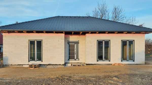 Ahol a minőség és a praktikum találkozik. Exkluzív ház, egyedi energetikai megoldásokkal. Nyúl település központi de nyugalmas részén kezdték meg a kivitelezését ennek a tágas és energiahatékony CSALÁDI HÁZNAK. Letisztult vonalvezetés - praktikus elrendezés - MODERN OTTHON. A 630 nm-es telekre nettó 135 nm-es otthon épül fel, 27,9 nm-es terasszal. Az amerikai konyhás nappalihoz 4 tágas hálószoba, 2 fürdőszoba, háztartási helyiség és egy hatalmas terasz keül kialakításra. Elrendezésének és méreteinek köszönhetően itt mindenki megtalálhatja a maga kényelmes-privát szféráját. Tájolásának és hatalmas ablakainak köszönhetően szinte egész nap fényárban úszik majd. Ha kicsinek ítéli meg a telket: szükség esetén kb. 300 nm-rel nagyobbítható!!! Egy kevés műszaki: 30 cm-es Via-Blok tégla falazat - 10 cm-es tégla válaszfalak. 20 cm-es homlokzati hőszigetelés Szeglemezes tetőszerkezet - 30 cm-es szálas szigeteléssel - antracit betoncserép fedéssel és csatornával 6 légkamrás tokkal - 3 rétegű üvegezéssel - acélmerevítéssel rendelkező antracit színű műanyag nyílászárókkal, melyekhez vakolható redőnytokozás és elektromos kiállás készül Pliszé szúnyoghálókhoz szükséges segédkeret beépítésre kerül Opciósan kérehető: antracit redőnyözés, távirányítóval és motoros mozgatással, valamint pliszé szúnyogháló. Víz-levegős hőszívattyú fűtés lesz mely padló és mennyezeti rendszerenek biztosítja a fűtést és a hűtést, valamint 300 liter használati melegvizet. 3x16A nappali áram és 3x16A H tarifa elektromos rendszer, valamint napelemes csatlakozás előkészítése. Riasztó rendszer alapszerelés és az érzékelőkhöz elektromos kiállás OPCIÓSAN kérhető: Kamerás kaputelefon Riasztó rendszer Utcafronti kerítés, antracit deszkázattal, zsalukő rendszerből, elektromos kapuval. Térkövezett kocsibeálló. Egyényi igényeket is figyelembe vesz a beruházó, hogy igazán az ÖN OTTHONA ÉPÜLJÖN FEL. Az ingatlan A+ energetikai tanúsítvánnyal rendelkezik. Előrehaladott - folyamatos kivitelezés. Átadása: műszaki átadás szerződéskötést követő hat hónapon belül. Részletes műszaki tartalomról, tervekről információt személyes találkozónál adok. Hívjon. Akár hétvégén is. Nehogy lemaradjon erről a remek ajánlatról. Irodánkban bankfüggetlen hitel tanácsadással és ügyintézéssel segítjük álmai megvalósításában. CSOK és állami támogatások intézése. Jogi és energetikai háttér.