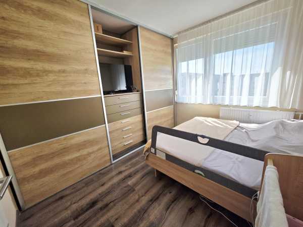 Nyíregyháza - Örökösföldön felújított 80 m2-es, 3 szoba + nappalis lakás eladó! Amit érdemes tudni az ingatlanról: - 10 lakásos társasház 4. emeletén található, - alapterülete 80 m2, - fűtése egyedi mérésű távhő, - hűtő - fűtő klíma a nappaliban, - műanyag nyílászárók redőnnyel felszerelve, - a társasházon a tetőszigetelés 2 évvel ezelőtt megvalósult, - parkolni a társasház közelében lévő parkolóban díjmentesen lehetséges. Élettér: 3 szoba, nappali, közlekedő, konyha + étkező, fürdőszoba, WC, erkély (3 m2). A nappali és a mellette lévő szoba között tolóajtó található. A lakáshoz tartozik még egy szintén a negyedik emeleten lévő saját tároló, + a pincerészben lévő közös tároló + a lépcsőházban található még babakocsi tároló is. A lakásban maradó bútorok, melyek a vételár részét képezik: - beépített szekrény a hálószobában, illetve az egyik gyerekszobában, - konyhabútor beépített, garanciás mosogatógéppel, - illetve a közlekedő tükrös szekrénye, a benne lévő szárítógéppel. A lakás rezsije rendkívül kedvező. A közös költség 12.000 Ft. A felújítás részét képezte a padlóburkolatok, az ajtók cseréje, illetve a beépített bútorokat is kb. akkor vásárolták. A lépcsőház csempézése 3 éve megtörtént. A lakás KÖLTÖZHETŐ állapotban van! Ha nem szeretne felújítással bajlódni, akkor keressen bizalommal! Bankfüggetlen, díjmentes hitelügyintézéssel várom hívását.