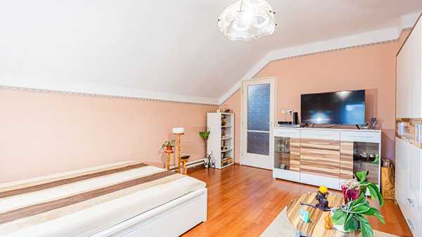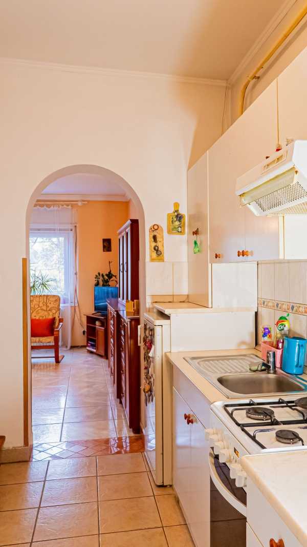 Eladó egy 404 m²-es telken található, 86 m²-es, belső kétszintes, 3 szobás, dupla komfortos ikerházfél csendes, rendezett utcában! A napfényes, praktikus elrendezésű otthon kényelmes életteret biztosít, a fűtésről gázcirkó gondoskodik. A közelmúltban új Lindab lemeztetőt kapott, valamint műanyag nyílászárók kerültek beépítésre (a fürdőszobát kivéve). Az ingatlan hitelezhető, rendezett jogviszonyokkal rendelkezik. A gondozott kert tökéletes helyszíne a pihenésnek, családi programoknak és kikapcsolódásnak. A telek végében található egy 24 m²-es tágas tároló, amely alatt egy 15 m²-es száraz pince nyújt további praktikus tárolási lehetőséget — ideális hobbi helyiségnek vagy műhelynek is. Környék és infrastruktúra: A ház csendes, rendezett utcában helyezkedik el, ugyanakkor minden fontos intézmény könnyen elérhető: háziorvos, iskolák, óvoda, Szabó Ervin Könyvtár és a Ríz Levente Sportcsarnok is a közelben található. A közlekedés kiváló, az infrastruktúra pedig kimagaslóan jó. Ideális választás családoknak és bárkinek, aki nyugodt, jó elhelyezkedésű, jól felszerelt otthont keres!