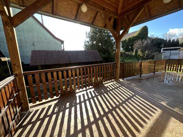 Exkluzív lehetőség Tényő egyik legcsendesebb, természetközeli részén! Eladó egy kivételes állapotú, 2004-ben épült, 74,69 m²-es, gondosan karbantartott családi ház 816 m²-es, rendezett telken. A ház igényes kialakítása és praktikus elrendezése ideális választássá teszi akár magas színvonalú magánéleti, akár igényes üzleti célokra. A több mint 39 m²-es nappali–konyha–étkező tágas, világos és letisztult életteret biztosít, melyhez két külön nyíló szoba, modern fürdőszoba és külön WC társul. A komfortot kétrétegű műanyag nyílászárók, szigetelés, biztonsági ajtó, klíma és ipari áram teszik teljessé. A fűtésről gázkonvektorok és hangulatos cserépkályha gondoskodnak, a meleg vizet villanybojler szolgáltatja. A telken fúrt kút és házi vízmű áll rendelkezésre. A többfunkciós ingatlanhoz három különálló garázs tartozik: 32 m²-es, aknás garázs 25 m²-es, magas jármű fogadására alkalmas garázs 43 m²-es, dupla ajtós garázs Az udvarban további parkolási lehetőség biztosított – akár vállalkozás számára is tökéletes logisztikai háttér. Tényő nyugodt, fejlődő település, Győrtől mindössze 18 km-re. Teljes körű szolgáltatásokkal, biztonságos környezettel és kiváló elérhetőséggel várja új tulajdonosát. Ez az ingatlan egy valódi ritkaság, amely egyszerre kínál kényelmet, eleganciát és professzionális lehetőséget – legyen szó otthonról vagy üzleti tevékenységről. Kívánom, hogy új tulajdonosa ugyanolyan szeretettel és örömmel használja majd, ahogyan azt ez a ház megérdemli.