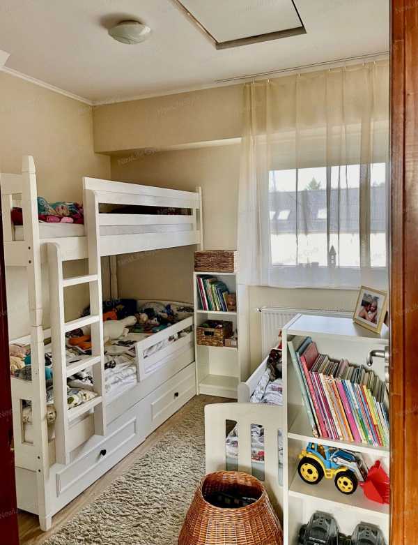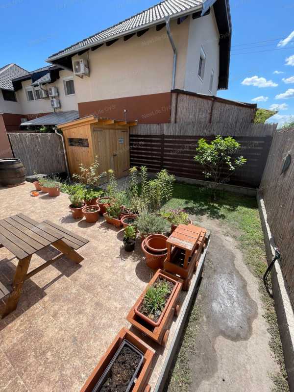 Eladóvá lakás Tökölön, mely egy négylakásos társasház szélső lakása. Mérete 68,9 m2. A lakás minden részére letisztult, természetes színvilágú burkolatot választottunk, ennek és a sok napfénynek köszönhetően otthonos, kellemes hangulata van, ahova igazán jó érzés hazatérni. Egy festés után költözhető. A lakásba belépve egy kis előtérbe érkezünk meg, szemben található egy mosdó. Balra a fával burkolt lépcső alatt nagy tárolóhely lett kialakítva. A fa természetes szépséget és melegséget visz az előtérbe. A földszinten található továbbá egy tágas, napfényes amerikai konyhás nappali gyönyörű konyhabútorral, beépített sütővel, kerámialapos főzőlappal és mosogatógéppel. A konyhából az előkertre és az utcafrontra nyílik kilátás. A déli fekvésű nappaliból pedig a hátsó udvarra. A konyhából nyílik még egy kamra. A felső szintre érkezve egy folyosóról négy ajtó nyílik. Jobbra található egy fürdőszoba, melyben fürdőkád és wc van, illetve itt található a gázkazán. Két szoba déli fekvésű, napfényes, a harmadik szoba északi fekvésű. Ebben egy egyedileg tervezett beépített gardróbszekrény is található. A bal hátsó szobában hűtő-fűtő klíma van. Az ingatlan egy önálló körbejárható, 150 m2-es bájos udvarral rendelkezik, ahol füves területek mellett, betonozott kocsibeálló, térkövezett járda van. Az udvaron található egy betonozott alapra épített kerti faház, ebben helyezkedik el egy aknában az udvar locsolásához szükséges szivattyú is. A vizet fúrt kút biztosítja. A szivattyú a teraszról kapcsolóval működtethető. A kút kiállása kertrendezés előtt KPE csőben a föld alatt el lett vezetve. Elől és hátul is föld alatti szikkasztó gondoskodik a megfelelő vízelvezetésről. A nyitott, 15 m2-es terasz csúszásmentes járólappal burkolattal van ellátva. Igény esetén beépíthető. A lakás 2018-ban épült. A házon Terrán Synus cserép van. A födémen 15 cm kőzetgyapot szigetelés van. A homlokzati hőszigetelés 10 cm. Az ablakokon alumínium szúnyógháló és redőny van. A lakás riasztóval és elől-hátul külső kamerával felszerelt. A fűtésről és melegvízről gázkazán gondoskodik. Az alsó szinten, valamint a fenti fürdőszobában padlófűtés szolgáltatja a meleget, a három szobában pedig radiátor. A padlás fele ledeszkázott, ezért alkalmas tárolásra. Autóval parkolásra lehetőség van az első udvarban a betonozott beállón és a lakás előtti területen. Tököl Pest vármegyében található Duna-parti, nyugodt, biztonságos kisváros. A lakás egy csendes újépítésű, frissen aszfaltozott utcában helyezkedik el. A közelében, gyalog 5 percre található egy kis vegyesbolt. A központ autóval 4 perc, itt található SPAR, orvosi rendelők, cukrászda, pékség, fodrász, kozmetikus, bankautomata. Buszmegálló 5-10 perc sétára található. A településen HÉV állomás van, A H6-es HÉV Budapest Közvágóhíd és Ráckeve között közlekedik. A településen található 4 állami óvoda, 1 bölcsőde és 1 általános iskola is. Irányár: 83 millió Ft