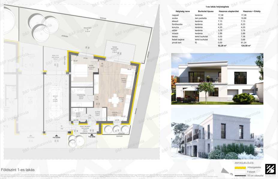 Hajdúszoboszló belvárosában, újonnan épülő társasházban eladó egy Földszinti 52,29 m2-es lakás + 7,38 m2 terasz + 3,68 m2 fedett bejárat + 61,24 m2 privát kerttel (Összesen: 124,59 m2), amely ideális választás lehet első lakásnak vagy családoknak illetve befektetőknek. Az ingatlan építése 2025-ben kezdődött, átadása 2026 év végén várható. Ez az energiatakarékos társasház a mai kornak megfelel: a fenntarthatóság és a modern életstílus tökéletes ötvözete. A társasházban 5 exkluzív lakás, 1 udvari beálló és 4 kényelmes garázs kerül kialakításra, kiemelkedő minőségű anyagok felhasználásával és korszerű építészeti megoldásokkal. A lakás hasznos alapterülete 52,29 m2 + van hozzá 7,38 m2 terasz + 3,68 m2 fedett bejárat + 61,24 m2 privát kert. Rendelkezik 1 tágas világos szobával, hatalmas amerikai konyhás nappalival + étkezővel, fedett bejárattal, térköves terasszal valamint körbe kerített privát kerttel. Az épület A+ energiahatékonyságot biztosít, amely alacsony fenntartási költségeket és környezetbarát megoldásokat garantál. Praktikus elrendezéssel, tágas terekkel várja új lakóit, ahol a természetes fényáradat minden lakásban garantált. Az épülethez tartozó garázsok biztosítják a lakók számára a biztonságos és kényelmes parkolási lehetőséget. Még 3 garázs és 3 lakás leköthető. A garázsok ára: 10.000.000 - 12.000.000 Ft Az ingatlan kiváló helyen található: mindössze 100 méterre van a híres hajdúszoboszlói fürdőtől, így tökéletes választás mind állandó lakhatásra, mind befektetési célra. A fürdő közelsége garantálja a magas bérbeadási potenciált és a folyamatos keresletet. A lakás bútorozatlan, így lehetősége van saját ízlése szerint berendezni, hogy igazán otthonos légkört teremtsen. A lakás ára 80 990 000Ft, amely egy ilyen frekventált helyen és kiváló állapotú ingatlan esetén kedvező lehetőségnek számít. Ne hagyja ki ezt a remek ajánlatot, és lépjen a saját otthona felé Hajdúszoboszló szívében!