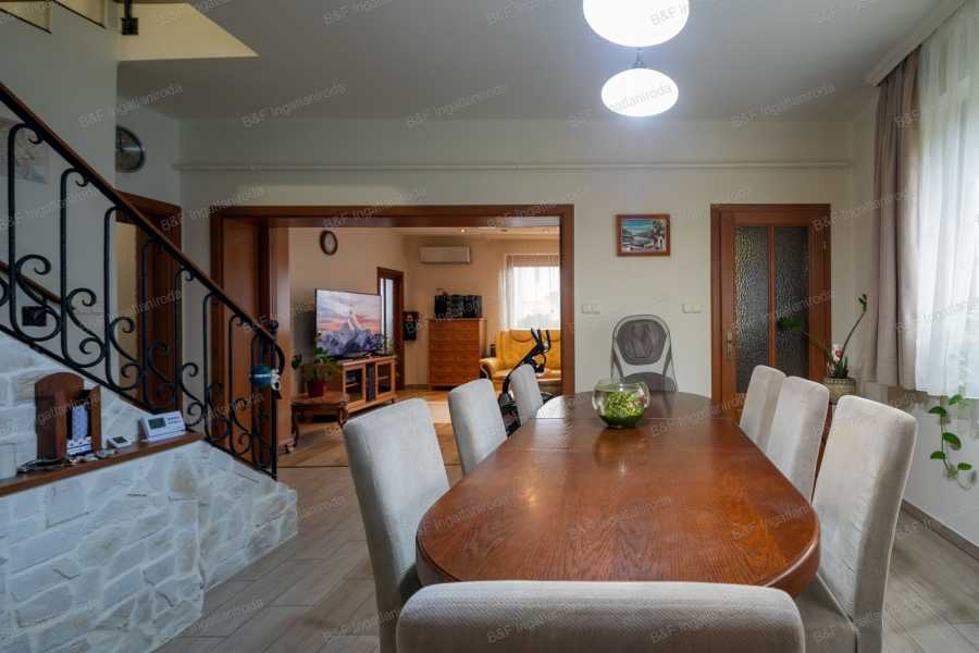 Hajdúszoboszló közkedvelt, csendes részén, a Bertóktelepen eladó egy 1985-ben épült, 2021-ben teljes körűen prémium minőségben felújított, 147 m²-es hasznos alapterülettel rendelkező, kétszintes családi ház, 740 m²-es, gondozott, parkosított telken. A felújítás prémium anyagokkal és kivitelezéssel történt: – új tetőszerkezet – modern, minőségi burkolatok – korszerű fűtésrendszer és gépészet – teljesen megújult fürdőszobák és konyha – új, igényesen kialakított kerítés A ház folyamatosan karbantartott, azonnal költözhető, rejtett költségek nélkül. A földszinten tágas nappali–étkező–konyha, kamra, gardrób, fürdőszoba és külön WC található. Az emeleten három hálószoba, gardrób, fürdőszoba és erkély biztosítja a kényelmet. A 73 m²-es melléképület két garázst, nyárikonyhát, kerékpártárolót, WC-t és 17 m²-es fedett kerti kiülőt tartalmaz — akár vendégháznak vagy második lakrésznek is átalakítható. A KÉPEK KÖZÖTT TALÁL ALAPRAJZOKAT IS, MELYEN A PONTOS NÉGYZETMÉTEREKET IS MEGTEKINTHETI. A kert parkosított, filagóriával és szalonnasütővel, ideális családi és baráti összejövetelekhez. - 2021-ben teljes körű felújítás - Prémium anyaghasználat – tető, fűtés, burkolatok, fürdők, gépészet - Új, igényes kerítés - Két garázs és több mellékhelyiség - Csendes, mégis frekventált környék Ár: minimálisan alkuképes! Amennyiben a hirdetésben szereplő ingatlan felkeltette az érdeklődését hívjon bizalommal és tekintse meg akár még ma!