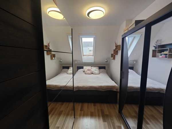 Sopron legszebb és legfrekventáltabb városrészében, az alsólővereki József Attila utca és a Felsőbüki Nagy Pál utca találkozásánál, csendes, zöldövezeti környezetben helyezkedik el az Alsólőver Lakópark. A 1,5 hektáros parkosított terület és a kiemelkedő minőségű kivitelezés egyedülálló lakóélményt biztosít. A lakópark minden egysége energetikailag korszerű minősítéssel rendelkezik, ezért a fenntartási költségek alacsonyak. Az ingatlan főbb adatai Építés éve: 2017 Állapot: újszerű Lakótér nettó: 55 m² Hasznos alapterület: 53 m² (hálószoba tetőtéri, így kisebb a hasznos m²) Erkély: 4,4 m², csendes, belső udvarra néző Emelet: 2. szint – nincs felső szomszéd, világosabb, szebb kilátás Felszereltség és műszaki tartalom Távfűtés → kiemelkedően alacsony rezsi, nincs saját kazán 3 rétegű üvegezésű ablakok redőnyökkel Beépített előszobai szekrény Gépesített konyha Optikai internet Fürdő és WC: elszívó ventilátorok Riasztórendszer kiállások előkészítve Felújítások, fejlesztések 2024 hűtő-fűtő inverteres split klíma új fürdőszoba bútor tetőtéri fényzáró roló + szúnyogháló 2020 Stegu prémium kőburkolat a nappaliban Finanszírozás Banki értékbecslő által felmért ingatlan, így alkalmas Otthon Start Programra és CSOK Pluszra is. Elérhetőség Mesztegnyei Attila – Ingatlanközvetítő +36 70 942 4509