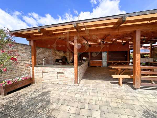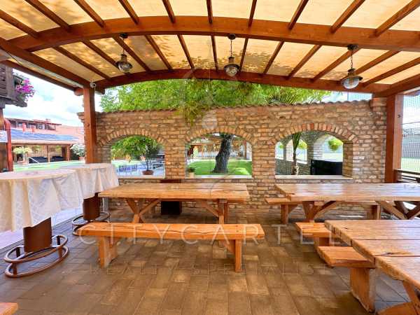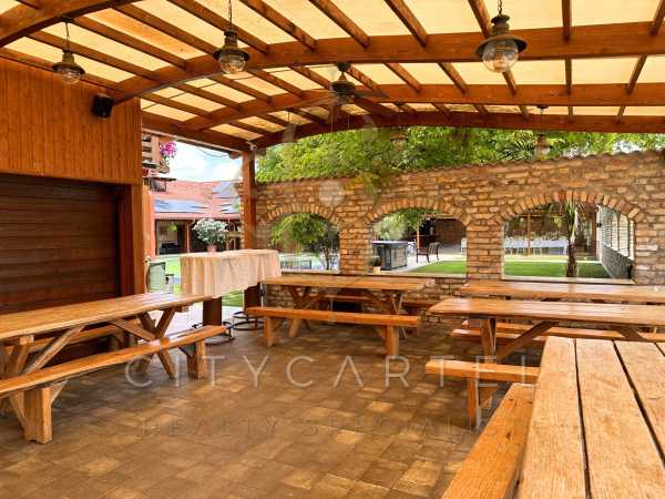 C I T Y C A R T E L INTERNATIONAL LUXURY REAL ESTATE AGENCY bemutatja: Eladó panzió, étterem és rendezvényközpont - a nyugalom és elegancia tökéletes keveréke - 4175 nm-es telken 755 nm-es különleges, Bali hangulatú épületkomplexum wellnessel és medencével rendelkező 9 szobás panzióval, konferenciateremmel, étteremmel, bárral, kerti grillezővel, sportpályával, önálló parkoló udvarral - Kizárólag irodánk kínálatában Varázslatos Bali hangulatát idéző, teljesen felszerelt, berendezett, medencés, exkluzív 9 szobás panzió, bár, étterem és rendezvényközpont Ladánybenén, a település szívében, amely páratlan lehetőségeket kínál vendéglátás, sporttevékenységek vagy rendezvények lebonyolítására! Az épületkomplexum teljes nettó területe 755 nm (454 nm étterem és rendezvényközpont + 215 nm hotel + 68 nm lelátó + melléképületek) Főbb jellemzői Telek A 4175 nm-es telek két helyrajzi számon található, amelyből a 2877 nm-es részen az épületkomplexum, az 1298 nm-es telken pedig a kőzúzalékkal burkolt, 30-40 autó számára elegendő helyet biztosító, de akár fejlesztésre alkalmas (a parkoló egy részére akár szép családi házat is lehet építeni) zárt parkoló helyezkedik el. A telek építési övezete: Vt – Településközpont vegyes terület. Épületkomplexum A szálláshely 2016-ban épült, majd 2022-ben bővítésre került. A komplexum négy fő egységre bontható: a kereszteződésben, közvetlenül az utcafronton, a 2016-ban épült, sarok épületben található étterem-bár-wellness-rendezvényterem, a belső telekhatár mellett, a 2016-ban épült, majd 2022-ben bővített, medencére néző, hangulatos, 2 szintes, 9 szobás szálloda, a két épület által közrefogott kb. 100 nm felületű kültéri medence és jacuzzi a fentieket kiszolgáló grill terasszal, valamint a külön utcai bejárattal elérhető, tenisz- és futball pályának alkalmas sportpálya és lelátó. Részletek Étterem és rendezvényterem Az utcafronti sarok épületben található étterem és rendezvényközpont összesen br 501 nm (nettó 454 nm), ebben benne van a 132 nm-es, fedett üvegezett étterem/rendezvényterem, 118 nm-es rendezvényterem, 67 nm-es bár, a wellness, szauna, gőzkabin, konyha, iroda és kiszolgáló helyiségek, raktár, mellékhelyiségek. A konferenciaterem ideális helyszíne lehet üzleti megbeszéléseknek, tréningeknek vagy kisebb konferenciáknak, max. 50 fő befogadására alkalmas, és minden szükséges technikai eszközzel felszerelt. Tökéletes esküvők, családi vagy baráti események vagy céges rendezvények lebonyolítására. Az épületben található a medencetérre kijárattal rendelkező wellness részleg is, mögötte pedig gyerekek számára kis játszóteret is kialakítottak. Szálloda A 215 nm-es panzió 9 egyedi szobával (8 db 1 szobás, 1 db 2 szobás) rendelkezik, amelyek összesen 18-30 fő elszállásolására alkalmasak. A földszinten négy standard szoba várja a vendégeket, az emeleten öt egyedi design szoba kapott helyet, mindegyik különleges stílusban berendezve. A szobák mindegyike külön fürdőhelyiséggel, televízióval, egyénileg állítható klímával és mini hűtővel felszerelt. Kültéri medence és sportlétesítmények A 100 nm-es medence és a jacuzzi a grillterasszal kiegészítve kiválóan alkalmas szabadtéri rendezvényekhez -a 68 nm-es lelátóval ellátott sportpálya pedig ideális helyszín baráti mérkőzésekhez vagy akár helyi sporteseményekhez. A lelátónál tárolók, mellékhelyiségek kerültek kialakításra. Wellness és szabadidős lehetőségek A beltéri wellness részleg 2022-ben került kialakításra, ahol szauna, gőzkabin és jakuzzi várja a vendégeket, biztosítva a teljes kikapcsolódást a hidegebb hónapokban is. A grill terasz a nyári időszakban 10-30 fős rendezvényeknek ad otthont, ahol a kinti grill konyha teljes felszereltséggel rendelkezik, így akár bográcsozásra is van lehetőség. A kinti szórakozási lehetőségek között található a medence, jakuzzi, kivilágított műfüves sportpálya, ping pong asztal és egy kis játszótér a kisebb gyerekek számára. Lehetséges felhasználási lehetőségek A magán célra való hasznosításon kívül lokációja és kialakítása okán elsősorban vendéglátásra, sporttevékenységre és rendezvények tartására alkalmas, de lehetőség van az alábbi opciók megvalósízására: Exkluzív szálláshely Az egyedi stílusú szobák lehetőséget kínálnak arra, hogy a helyszínt exkluzív, boutique panzióként üzemeltessék - a különleges szobák stílusa és a luxus szolgáltatások ideálisak lehetnek a prémium vendégek számára, akik különleges élményeket keresnek. Céges üdülő A helyszín ideális vállalatok számára, hogy munkavállalóiknak pihenést biztosítsanak, csapatépítő programokat szervezzenek, vagy akár konferenciákat és tréningeket tartsanak. A szálloda egyedi szobái és a rendezvényterem tökéletes környezetet biztosítanak ezekhez az eseményekhez. Esküvői helyszín A romantikus és varázslatos környezet tökéletes esküvői helyszín, ahol a fedett terasz, a kültéri medence, és a wellness szolgáltatások biztosítják a felejthetetlen élményt a nagy napon. Tematikus hétvégék A szálloda és rendezvényközpont tematikus rendezvények, workshopok, vagy kreatív események szervezésére is alkalmas. Például lehetőség van borkóstoló hétvégékre, gasztronómiai fesztiválokra, művészeti workshopokra, vagy akár wellness retreatekre is. Sport-, wellness-, egészség központ A sportpálya, medence, és wellness létesítmények lehetőséget adnak sporttáborok, wellness hétvégék, vagy akár egészségtudatos programok szervezésére. Ez a helyszín tökéletes a sport- és egészségközpontok számára, akik exkluzív környezetben szeretnék