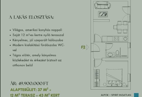River2 SPA új építésű lakásaiból ajánlom ezt a 43 m2-es, 12 m2-es erkélyes, 1szoba + nappalis + konyha-étkezős kényelmes otthont. A lakáshot 43 m2 kert is tartozik. Az ingatlant 1 éven belül átveheti. Ismerje meg a kőszegi River-SPA Lakópark II. ütemét! Az új építésű ingatlan modern energetikai felszereltséggel, kiemelkedő műszaki tartalmú, prémium téglalakásaival várja lakóit, akik otthonná varázsolják a minőségi tereket. Az Ausztria kapujában található zárt, energiatakarékos társasház egyebek mellett medencével, fitnesz részleggel és szauna házzal kényezteti Önt. Elhelyezkedés: Kőszegen, a Gyöngyös-patak mentén, a belvárostól és Ausztriától is percekre található az ingatlan, amelyet nemzetközileg is elismert építész álmodott meg, modern technológiák felhasználásával, páratlan gondossággal készült. Az I. ütem során mostanra megvalósult vagy megvalósítás alatt álló extra szolgáltatások (épített, automata medence, beléptetést szolgáló motoros úszókapu, szauna ház, wellness és privát konditerem) kényeztetik majd a II. ütem vásárlóit is. Ezek a szolgáltatások is emelik az ingatlanok piaci értékét, kiadhatóságát. Akár saját részre vásárolna, akár kiadási célzattal fektetne be, nem fog csalódni! Ajánlom: rövid- és hosszútávú befektetőknek, Ausztriába ingázóknak, álmaik kisebb-nagyobb otthonát keresőknek, emellett mindazoknak, akik nem érik be a megszokottal, hanem elérhető áron luxus szolgáltatásokat is keresnek. A lakás elosztása: -világos, amerikai konyhás nappali - kényelmes, jól szeparált hálószoba -modern kialakítású fürdőszoba vécével - tágas előtér, amely kényelmes közlekedést és érkezést biztosít az otthonon belül -saját, nappaliból nyíló, kertre néző erkély Medence: Nem kell utaznia a strandélményért, hanem a saját kertben, korszerű, süllyesztett, hangulatvilágított medencével élvezheti a meleg, nyári napokat. Kültéri rekreációs övezet: Egy helyen valósulhat meg a baráti összejövetel, a családi grillezés, vagy éppen egy csendes délután. Fitness és wellness: A medence látványa egész évben gyönyörködtet, a beltéri fitness pedig masszázzsal és modern szolgáltatásokkal (Infrashape, okos edzőgép) várja a feltöltődésre vágyókat. A kényeztetés szerepét télre a szauna ház veszi át. Távirányítású kapu: Mindössze egy gombnyomás, úszókapunk pedig már be is engedi Önt. Parkolók: Minden ingatlanunk vételárának részét képezi egy saját parkolóhely is. Garázsok külön vásárolhatók! Műszaki leírás: - A tégla építésű, vadonatúj ingatlan külső hőszigeteléssel - Új, három rétegű, fokozott hő- és hangszigetelésű nyílászárókat építettek be a szakemberek. - Új elektromos- és vízhálózatot alakítottunk ki. - Minden lakást külön vízmérő és villanyórával láttunk el, illetve kiépítettük a későbbi H tarifa igénylése esetére szükséges elektromos kábelezést is. - Az általunk megadott ár kulcsrakész kivitelezést tartalmaz: szaniterek, csapok és mosdó, elektromos bojler minden lakáshoz, külön klímakészülék a 2.emeleti lakásokhoz, mennyezeti lámpák, kapcsolók, konnektorok stb. mind a vételár részét képezik. - A lakások között akusztikailag szigetelt falakat építettünk a teljes csend és nyugalom érdekében. - Az ingatlan társasházi okirattal és társasházi formában működik majd, így külön helyrajzi számot kap minden lakás. Kapcsolat: Érdeklődése esetén kérem, hogy keressen és egy személyes találkozó alkalmával szívesen válaszolok a kérdéseire, miközben a helyszínen megmutatom a lakásokat. A vásárlók igényei szerint egyedi fizetési konstrukciókat kínálok. Simon Zsolt 06209504680 ml.ingatlan1@gmail.com