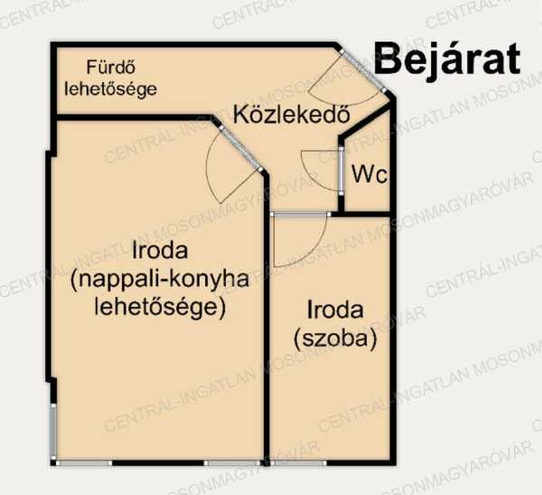 Mosonmagyaróváron, belvárosában, 40m2 teljes alapterületű, 1. emeleti, 2 szobás iroda eladó. A társasházban található ingatlan egy fürdő elhelyezésével lakássá alakítható. Kiváló választás saját otthonnak és befektetésnek egyaránt. - A belvárosi elhelyezkedés sok előnyt biztosít irodai használathoz. Bőven található parkoló a közelben. A társasházban megtalálhatóak üzletek, irodák lakások egyaránt. -A lakássá alakításhoz egy fürdő és egy konyha elhelyezésére van szükség. Erre megvan a lehetőség az ingatlanon belül. -Az ablakok pár éve ki lettek cserélve, minden ablak műanyag profillal készült, hőszigetelt üvegezésű nyílászáró. Az ablakokra lapfüggöny van felszerelve. - Az iroda házközponti, kondenzációs gázkazánnal fűtött, a lapradiátorokon egyedi mérővel, termosztátos csapokkal. A helyiségekbe egy-egy hűtő-fűtő klíma is fel lett szerelve. A meleg vizet szintén a házközponti gázkazán biztosítja, meleg víz órával mérve. - Az ingatlant az elmúlt időszakban irodaként használták, ezért szinte minden helyiség irodai, strapabíró burkolattal burkolt. A led lámpatestek és a padlószőnyeg szinte új. -Az internet és a belső informatikai hálózat minden fő helyiségben kiépített. Irodai célra azonnal használható. -Az ajánlatban szereplő irodának van egy „nagy testvére” is. Jelenleg a két iroda egybe van nyitva összesen 107m2 (67m2+40m2), egyben is megvásárolható. Mindkét ingatlan önálló rendeltetési egység, önálló helyrajzi számmal, saját mérőórákkal. Mindkét iroda könnyen lakássá alakítható és átminősíthető. Kiválóan alkalmas belvárosi irodának, lakásnak, befektetésnek egyaránt. Ár-érték arányban a legjobb a piacon! KIZÁRÓLAG A CENTRÁL-INGATLAN KÍNÁLATÁBAN! A megadott elérhetőségeken várom érdeklődését!