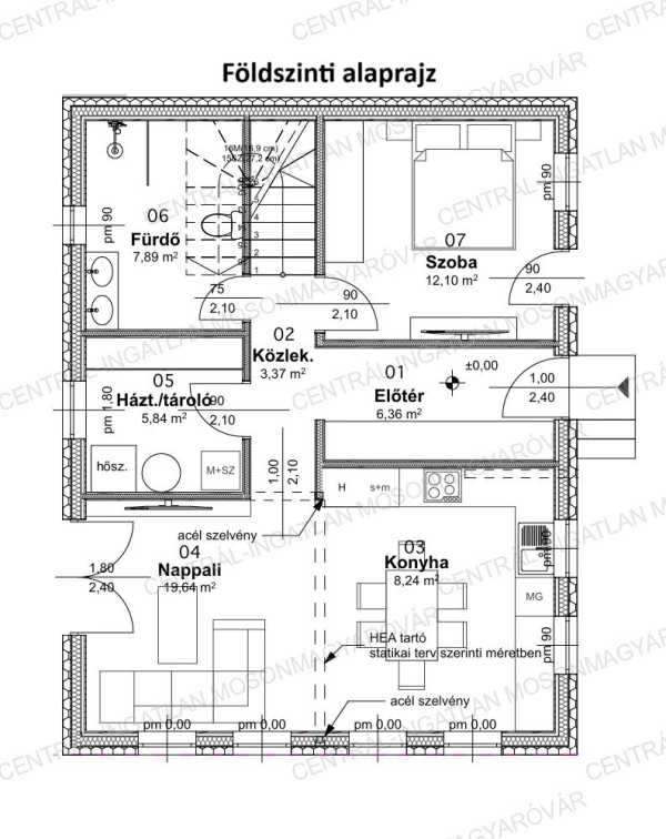 A CENTRÁL-INGATLAN kínálatában található egyedi, különleges ajánlatot látja! MOST 2.500.000.-Ft ÁRKEDVEZMÉNNYEL VÁSÁROLHATÓ MEG! Ez az új építésű családi ház a környék legkedvezőbb vételáron lévő ingatlanja! 3%-os Otthon Start Program, CSOK PLUSZ, babaváró igényelhető akár 3gyerekre is (106m2-es lakótér). -Mosonmagyaróvár határában, a Mosoni-Duna ölelésében lévő Aranyossziget Villaparkban (Máriakálnok) kínáljuk ezt a készülő családi házat! -A családi ház feltüntetett ára fűtéskész készültségi szintre vonatkozik. Lekötéstől függően akár már 2026. nyár végére átvehető. Kulcsrakészen is megrendelhető! Érdemes ezt megnézni mert kulcsrakészen, ennyiért nincs ilyen családi ház a környék ingatlanpiacán. A átadás a lekötés időpontjától függően változhat. -A saroktelekre két önálló családi ház épül. Teljesen külön bejárattal, telekrésszel, nincs átjárás! -Az L1 jelölésű családi házhoz 284m2 telekterület tartozik, itt kialakítható kocsibeálló, füvesített-parkosított kert, fedett vagy nyitott terasz igény szerinti méretben. -A családi ház két teljes szinttel készül, 105.73m2 lakóterülettel, terasz igény szerinti méretben készülhet (plusz költség). A belső kialakítás kiváló. A nappali-konyha-étkező tágas (28m2), a földszinten készül 1 hálószoba, fürdőszoba wc-vel és egy tágas háztartási helyiség. Az emeleten 2 hálószoba, fürdőszoba wc-vel és gardrób helyiség lesz kialakítva. A felső szinten akár egy tetőterasz is kialakítható. A műszaki paraméterek magasak, kizárólag I. osztályú anyagok felhasználásával épül a családi ház, tapasztalt, 25 éve működő kivitelező munkájával. Fűtésre és meleg víz készítésre HŐSZIVATTYÚ lesz beépítve. A fűtésrendszer padlófűtéssel készül. 1 db klíma kiállást-előkészítést az ár tartalmaz. A fürdőkben elektromos, törölközőszárítós radiátorok is lesznek a padlófűtés mellett. A könnyűszerkezetes technológiával épülő családi ház ÉMI engedéllyel rendelkező szabadalmaztatott rendszerrel készül. A külső falakra 12cm polisztirol hőszigetelés kerül, a födém 26cm táblás gyapot szigetelést kap, az aljzatba 15cm polisztirol hőszigetelés kerül. A fémvázszerkezettel épülő ház 15cm-es kőzetgyapot kitöltéssel, hőtükrös fóliával és dupla gipszkarton burkolással. Erre kerül még a 12cm polisztirol szigetelés. Így a legjobb hőszigetelésű falakat kapjuk. Referenciák a környéken bőven megtekinthetők. Energiatakarékosság, kiváló hő- és hangszigetelés A könnyűszerkezetes ház hőszigetelő képessége az építés során alkalmazott technológia és anyagok tulajdonságaiból adódóan jóval jobb, mint a hagyományos szerkezetű épületeké. Az ilyen technológiával épülő házak esetében a fűtési költség mintegy 30-50%-kal is csökkenthető és a jól kialakított hőszigetelés jelentősen mérsékli a CO2 kibocsátást. Az emelkedő energiaárak miatt ez már egy megkerülhetetlen tényező az építkezés során, és ezen a téren a könnyűszerkezet verhetetlen! A külső műanyag nyílászárók 3 rétegű üvegezéssel készülnek. Redőny igény szerint kérhető (plusz költség). A FŰTÉSKÉSZ CSALÁDI HÁZ készültségi szintje kívülről: ház teljesen készre színezve, esőcsatornával kerül átadásra, telek tereprendezéssel. A kerítés, térköves járda, térköves kocsibeálló és a kapu opciósan kérhető, az ár nem tartalmazza. Belső készültség: fűtéskész befejezés, nyers falak, betonozott aljzat, víz-, villany kiállások (vezeték befűzve). Kulcsrakész befejezés is kérhető, sőt konyhabútor és beépített bútorok is rendelhetők. Így a teljes építkezés a beköltözhető állapotig 5% Áfával megvalósítható. Egyéb költségek: Áram ellátás 3X16A + 3X16A „H” tarifás villanyóra, 1.250.000.-Ft, napelem felszerelhető. Vízóra akna: 120.000.-Ft. Tervezés, statika, engedélyeztetés: 800.000.-Ft. Most 2.500.000.-Ft ÁRKEDVEZMÉNNYEL leköthető!!! Opciósan kérhető (feltüntetett ár nem tartalmazza): terasz teraszfedés, járda, kocsibeálló és további térkövezés igény szerint, bejárati kapu, parkosítás, kedvezményes áron konyha bútor, beépített bútorok készítése, stb. A telek fekvése, elhelyezkedése igazi természetközeli, mégis városhoz közeli otthont biztosít az itt lakóknak. Ez nem társasházas lakókörnyezet, kizárólag családi, iker- és sorházakkal. Könnyen elérhető Mosonmagyaróvár Városközpontjában található üzletek, szolgáltatások, stb. Aki olyan családi házban szeretne élni aminek a környezetében biztosan nem épülnek a jövőben társasházak, ipari és kereskedelmi létesítmények az itt fog lakni. A vételár tartalmazza a telek árát, a fűtéskész befejezést is. Új építésű ingatlanként megvásárolható, egyéb kedvezményes hitelezési konstrukciók is igénybe vehetők. A megadott elérhetőségen várom jelentkezését! Ingyenes, bankfüggetlen hitelügyintézést biztosítunk.