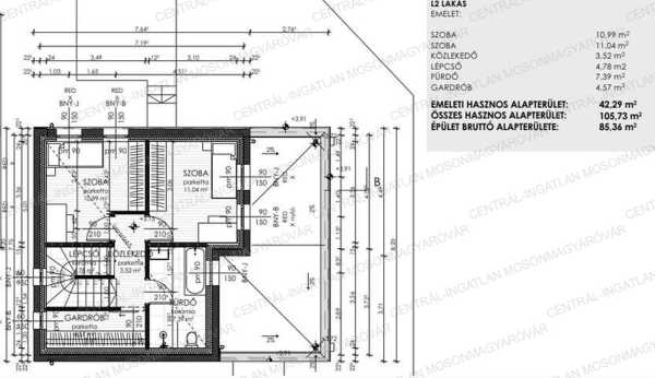A CENTRÁL-INGATLAN kínálatában található egyedi, különleges ajánlatot látja! MOST 2.500.000.-Ft ÁRKEDVEZMÉNNYEL VÁSÁROLHATÓ MEG! Ez az új építésű családi ház a környék legkedvezőbb vételáron lévő ingatlanja! 3%-os Otthon Start Program, CSOK PLUSZ, babaváró igényelhető akár 3gyerekre is (106m2-es lakótér). -Mosonmagyaróvár határában, a Mosoni-Duna ölelésében lévő Aranyossziget Villaparkban (Máriakálnok) kínáljuk ezt a készülő családi házat! -A családi ház feltüntetett ára fűtéskész készültségi szintre vonatkozik. Lekötéstől függően akár már 2026. nyár végére átvehető. Kulcsrakészen is megrendelhető! Érdemes ezt megnézni mert kulcsrakészen, ennyiért nincs ilyen családi ház a környék ingatlanpiacán. A átadás a lekötés időpontjától függően változhat. -A saroktelekre két önálló családi ház épül. Teljesen külön bejárattal, telekrésszel, nincs átjárás! -Az L2 jelölésű családi házhoz 273m2 telekterület tartozik, itt kialakítható kocsibeálló, füvesített-parkosított kert, fedett vagy nyitott terasz igény szerinti méretben. -A családi ház két teljes szinttel készül, 105.73m2 lakóterülettel, terasz igény szerinti méretben készülhet (plusz költség). A belső kialakítás kiváló. A nappali-konyha-étkező tágas (28m2), a földszinten készül 1 hálószoba, fürdőszoba wc-vel és egy tágas háztartási helyiség. Az emeleten 2 hálószoba, fürdőszoba wc-vel és gardrób helyiség lesz kialakítva. A felsőszinten akár egy tetőterasz is kialakítható. -A műszaki paraméterek magasak, kizárólag I. osztályú anyagok felhasználásával épül a családi ház, tapasztalt, 25 éve működő kivitelező munkájával. -Fűtésre és meleg víz készítésre HŐSZIVATTYÚ lesz beépítve. A fűtésrendszer padlófűtéssel készül. 1 db klíma kiállást-előkészítést az ár tartalmaz. A fürdőkben elektromos, törölközőszárítós radiátorok is lesznek a padlófűtés mellett. -A könnyűszerkezetes technológiával épülő családi ház ÉMI engedéllyel rendelkező szabadalmaztatott rendszerrel készül. A külső falakra 12cm polisztirol hőszigetelés kerül, a födém 26cm táblás gyapot szigetelést kap, az aljzatba 15cm polisztirol hőszigetelés kerül. A fémvázszerkezettel épülő ház 15cm-es kőzetgyapot kitöltéssel, hőtükrös fóliával és dupla gipszkarton burkolással. Erre kerül még a 12cm polisztirol szigetelés. Így a legjobb hőszigetelésű falakat kapjuk. Referenciák a környéken bőven megtekinthetők. -Energiatakarékosság, kiváló hő- és hangszigetelés A könnyűszerkezetes ház hőszigetelő képessége az építés során alkalmazott technológia és anyagok tulajdonságaiból adódóan jóval jobb, mint a hagyományos szerkezetű épületeké. Az ilyen technológiával épülő házak esetében a fűtési költség mintegy 30-50%-kal is csökkenthető és a jól kialakított hőszigetelés jelentősen mérsékli a CO2 kibocsátást. Az emelkedő energiaárak miatt ez már egy megkerülhetetlen tényező az építkezés során, és ezen a téren a könnyűszerkezet verhetetlen! -A külső műanyag nyílászárók 3 rétegű üvegezéssel készülnek. Redőny igény szerint kérhető (plusz költség). -A FŰTÉSKÉSZ CSALÁDI HÁZ készültségi szintje kívülről: ház teljesen készre színezve, esőcsatornával kerül átadásra, telek tereprendezéssel. A kerítés, térköves járda, térköves kocsibeálló és a kapu opciósan kérhető, az ár nem tartalmazza. -Belső készültség: fűtéskész befejezés, nyers falak, betonozott aljzat, víz-, villany kiállások (vezeték befűzve). Kulcsrakész befejezés is kérhető, sőt konyhabútor és beépített bútorok is rendelhetők. Így a teljes építkezés a beköltözhető állapotig 5% Áfával megvalósítható. -Egyéb költségek: Áram ellátás 3X16A + 3X16A „H” tarifás villanyóra, 1.250.000.-Ft, napelem felszerelhető. Vízóra akna: 120.000.-Ft. Tervezés, statika, engedélyeztetés: 800.000.-Ft. Most 2.500.000.-Ft ÁRKEDVEZMÉNNYEL leköthető!!! Opciósan kérhető (feltüntetett ár nem tartalmazza): terasz teraszfedés, járda, kocsibeálló és további térkövezés igény szerint, bejárati kapu, parkosítás, kedvezményes áron konyha bútor, beépített bútorok készítése, stb. A telek fekvése, elhelyezkedése igazi természetközeli, mégis városhoz közeli otthont biztosít az itt lakóknak. Ez nem társasházas lakókörnyezet, kizárólag családi, iker- és sorházakkal. Könnyen elérhető Mosonmagyaróvár Városközpontjában található üzletek, szolgáltatások, stb. Aki olyan családi házban szeretne élni aminek a környezetében biztosan nem épülnek a jövőben társasházak, ipari és kereskedelmi létesítmények az itt fog lakni. A vételár tartalmazza a telek árát, a fűtéskész befejezést is. Új építésű ingatlanként megvásárolható, egyéb kedvezményes hitelezési konstrukciók is igénybe vehetők. A megadott elérhetőségen várom jelentkezését! Ingyenes, bankfüggetlen hitelügyintézést biztosítunk.