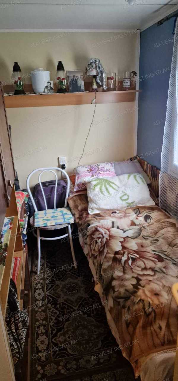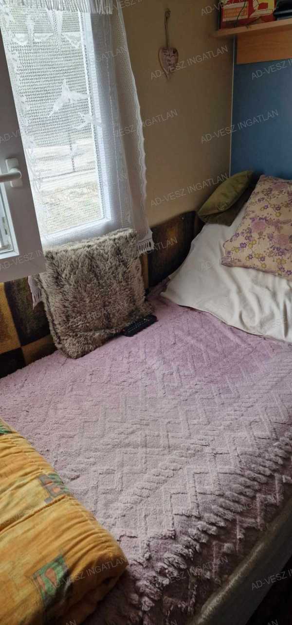 Táborfalván kínálunk eladásra egy telepített, téliesített SUNROLLERN238W tipusú mobilházat 1522m2-es telken. Állandó lakhatásra alkalmas. A 8mx3m-es szigetelt, klímával fűtött házon kívül még a telken található egy 3mx12m-es melléképület is, mely jelenleg garázs, és tároló funkciót tölt be. Az ingatlanba az elektromos áram, a vezetékes víz, és csatorna bevezetésre került. A 2 hálószobával, étkezős konyhával, fürdővel, wc-vel felszerelt épület még egy 18m2-es fedett terasszal is ki lett bővítve. Nagysága miatt kisebb család számára ajánlom, akik gyorsan szeretnék a lakhatást megoldani kevés költséggel. Az ingatlan közelében bolt, buszmegálló található. Táborfalva Pest vármegye déli részén, Budapesttől 60km-re fekszik; észak felől tölgyesek, dél felől a Kiskunság homokdűnéi és borókásai veszik körbe. A község területén áthalad az 5-ös főút, illetve (csomópont nélkül) az M5-ös autópálya is, ezek révén közúton könnyen megközelíthető az ország bármely része felől. A hazai vasútvonalak közül a MÁV 142-es számú Budapest–Kecskemét-vasútvonala érinti, melynek egy megállási pontja van itt, Táborfalva vasútállomás. Ha Ön csendes, vidéki életre vágyik, távol a város zajától, keressen!!! Kecskésné Bábel Andrea +36706471165