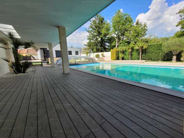 Megtalálta állmai Otthonát Győrtől 22 km-re Kóny településen ELADÓ, MODERN, ÚJÉPÍTÉSŰ CSALÁDI HÁZ mely saját Teniszpályával és Medencével rendelkezik. Ez az ingatlan nem egy átlagos Családi ház, ha belép az udvarra nem akar többet elmenni. Itt minden megtalálható hogy a szürke hétköznapjait ha haza ér el tudja felejteni. Az ingatlan egyben lehet akár az ön üzleti vállalkozása is, ingatlant ki adható akár rövid és hosszú távra is. A Teniszpálya és a fűtőt medence használható márciustól akár októberig, ezért az ingatlan kiválóan alkalmas akár csoportok fogadására is. A házunk a Kóny település csendes részén, aszfaltos úton jól megközelíthető helyen áll. A hátsó teraszról csodás panoráma nyílik a telek végétől nyíló Natura 2000 területre ahol az őzeket lehet csodálni. A legközelebbi város 8km re Csorna ahol Termálvizes gyógyfürdő, bevásárláshoz Spár,Tesco,piac minden megtalálható. A helyi buszjárat 5 percre található gyalogosan. Térbeosztása: telek: 1680 m2, lakóépület földszint: 165 m2, pincei rész 125 m2, földszinti terasz: 28 m2,a földszinti teraszról jutunk a medencéhez 13m x 7m amit körbe 45 m2 fedett és 60 m2 nyitott terasz ölel körbe. A medencénél töltőt időt Caribi hangulatúvá teszi a körbe épített mediterrán kert Pálmafák és cikászok. A telek a magas növésű tujáknak köszönhetően teljesen el szeparált a szomszédoktól. A medencétől szint különbséggel megyünk tovább a hátsó részhez ahol Első osztályú Teniszpálya lett kialakítva, a Teniszpálya külön rendelkezik kiszolgáló épülettel melyben nyárikonyha tároló és WC és egy 20 nm fedett terasz lett kialakítva. A hátsó részen van a gyerekeknek gyerek játszótér is. A telek hátsó részéről is van bejárat, ott is van parkolási lehetőség. A teljes ház alatt pince van ami több helységből áll és itt lett kialakítva a teljes fűtési és melegvíz rendszer. A fűtést és meleg vizet 12 KW Gree Hőszivattyú biztosítja 300 literes melegvíz és 300 literes fűtés puffertartályal. Földszint: A bejárati ajtón belépve előszobába lépünk, az előszobából mindjárt nyílik egy vendég WC.A előszobából a tágas Amerikai konyhás nappaliba érünk. A nappaliból külön és mégis közvetlenül kapcsolódva található a konyha. A nappaliból egy 28 m2-es teraszra léphetünk, ahonnan megközelíthető a napozóterasz a medencével. A nappaliból jobbra van egy vendégszoba külön fürdőszobával és Wc vel. A konyhából folyósón megyünk a 2 hálószobához a gardróbhoz és a tágas WC kádas zuhanyzós fürdőszobához mely otthont adott a mosógépnek és száritógépnek is. Az épület épitése 2024 ben kezdödöt és 2025 ben fejezödöt be. A ház alacsony üzemeltetésű,a (Napellem rendszer ép most van ki épités alatt) köszönhetően a beépített igen magas műszaki színvonalú megoldásoknak, anyagoknak. A fűtés Gree Hőszivattyú a hűtést pedig Gree hűtő fűtő klíma biztosítja ami távolról is vezérelhető, az alumínium redőnyök is távirányítóval működtethetők. Infrastruktúra, szerkezeti sajátosságok: Az áram (3x32 Amper) és 3x16A H tarifa áll rendelkezésre, víz, szennyvízcsatorna bekötésre került. Az ingatlanon nincsen gázbekötés. A fűtési rendszer az egész házban távolról is irányítható NGBS rendszerű. Az épület szerkezete kiemelten hőszigetelő Ytong 30 tégla. A pincefalak vízzáró vasbetonból készültek és plusz bitumenes szigeteléssel valamint drain rendszerrel építettek. A csapadékvíz elvezetésére szikkasztórendszer épült. Az épületen 10 cm Austrotherm Grafitos hőszigetelés van. A műanyag, minőségi Salamander nyílászárók 2 rétegű üvegezésük, a Salamander motoros, távirányítós redőnyök színre fújt lamellákkal minden ablakon, erkélyajtón megtalálhatóak. Burkolatok: Mindenhol egységesen hideg burkolat lett le téve 20x120 a padlón és 60x120 a fürdőszobában. A szaniterek és csaptelepek is Wallis márkájúak. A ház egyedi készítésük konyhabútort és egyéb beépített bútort kapott a gardróbbal együtt mindent asztalos készített. Az ingatlant tulajdonosként hirdetjük mi építettük magunknak, de sajnos a sors úgy hozta, hogy meg kell váljunk tőle.Az ingatlan nem csak családi házként tud funkcionálni hanem számos befektetési lehetőséget is rejt. Az ingatlan azonnal költözhető!!!
