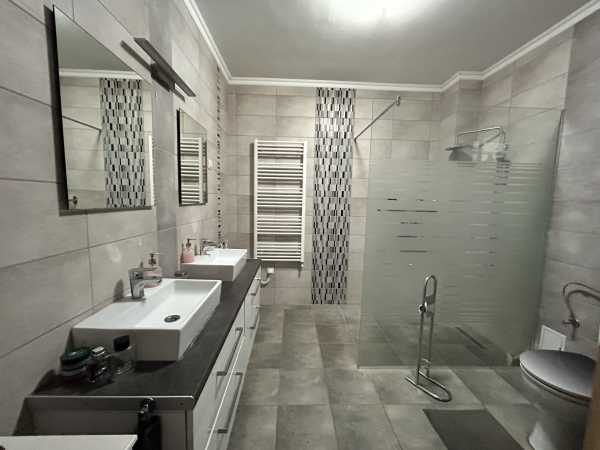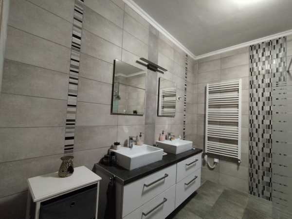 Ide valóban csak a fogkeféjét kell hoznia. Esztétikus,tágas,magas műszaki tartalommal,és minőségi anyagokkal kivitelezett házat kínálunk megvételre Miskolc, Újdiósgyőr városrészben. A 2017-ben,téglából épült ingatlan alapterülete 142 m2. Homlokzati szigetelése 10 cm, a födém szigetelése 15 cm. A tető héjazata betoncserép. Természetesen az összes nyílászárója hőszigetelt. A földszinten szigetelt aluminium redőnyökkel ellátottak,a tetőtérben pedig külső UV szűrőt,és belső sötétítőt kaptak. A fűtése gázkazánnal,kandallóval,és klímával is történhet. A hőleadás padlófűtésen,és radiátorokon keresztül valósul meg. Fenntartása nem terheli meg a pénztárcát,a tetőn lévő,déli tájolású, 5,1 KW teljesítményű napelem fedeziegy 4 fős család átlagos energiaszükségletét. A földszinten a nappali-konyha-étkező hármasa megfelelő élettér a kényelmes napi rutinhoz. A nappali közvetlen kapcsolódik a 40 m2-es fedett teraszhoz, ahol a kiváncsi tekintetektől rejtve lehet elfogyasztani a reggeli kávét,hogy jól induljon a nap. A tágas folyosón keresztül közelithetjük meg a lenti hálószobát,a nagyméretű fürdőszobát,gardróbot. Persze a konyhához jár egy kamra is. A mosókonyha, és egy technikai helyiség pedig kényelmesebbé teszi a napokat. A két autónak is elegendő helyet biztosító garázs belülről is megközelithető.. A tetőtér három szobája,fürdőszobája,gardróbja, és tágas folyosója valóban élhetővé teszi ezt az ingatlant. A telek területe 665 m2, a kert igényesen kialakított,gondozott. Gyükölcsfákkal telepített. Ásott kút segíti a kertészkedést. Nyitott és zárt tárolók segítenek a kerti szerszámokat elrejteni. Az ingatlan gyorsan birtokba vehető. A bútorok megbeszélés tárgyát képezhetik. Ésszerű keretek között rugalmasan tekintünk az árra.