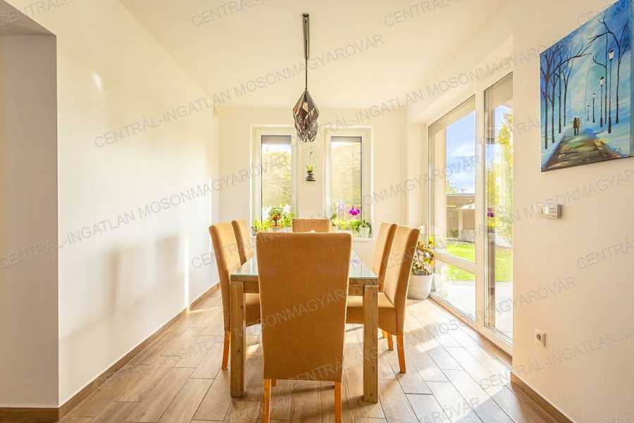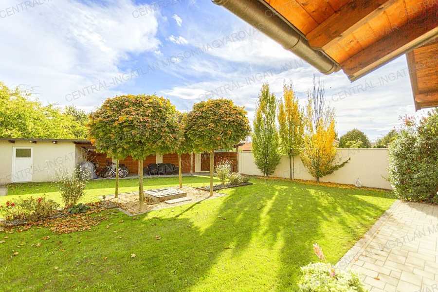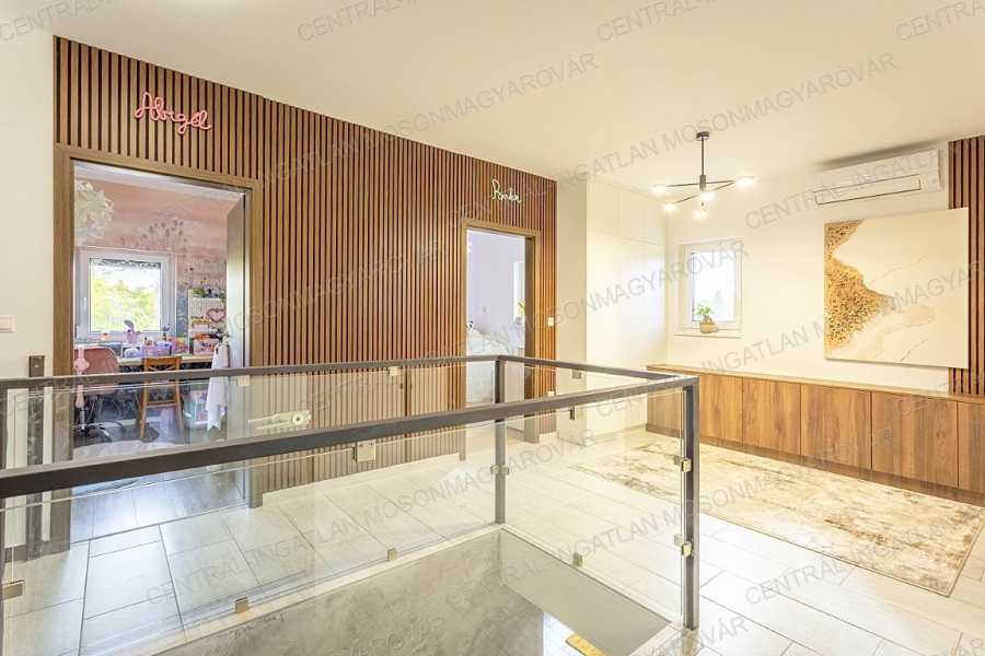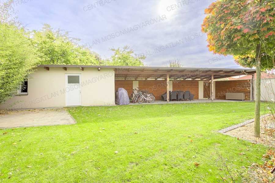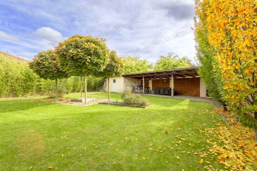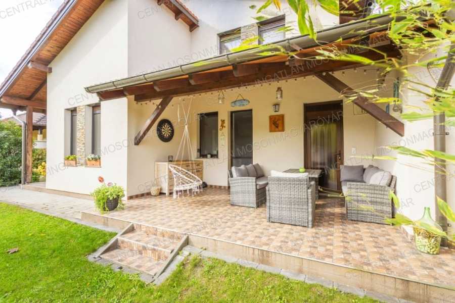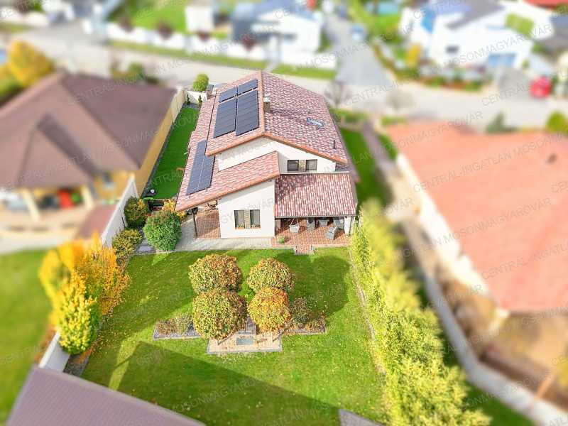 Mosonmagyaróváron, fiatal lakóparkban, stílusosan megépült, nappali + 4 szobás, minőségi családi ház itt a CENTRÁL-INGATLAN kínálatában. A 711 m2-es telek minden irányból belátás mentes. Szomszéd házakból, utcáról nincs rálátás a kertre. A kert parkosított, fúrt kúttal, automata öntözőrendszerrel, műhellyel-tárolóval a kerti eszközök tárolására és egy méretes grillterasszal. -A déli tájolás minden évszakban világossá varázsolja a főbb helyiségeket és a fedett teraszokat. A lakórész teljes területén padló- és falfűtés készült. Nyáron a kútvizes falhűtés és egy klíma biztosítja a kellemes hőmérsékletet. -A belső terek tágasak, kényelmes elosztással. A dupla-garázs is fűtött. A garázst és a lakórészt egy háztartási helyiség köti össze, itt minden elfér. -A földszinten nappali-étkező készült, a konyha a szomszédos helyiségben található (végre nem amerikai konyha!), tágas, de két lépéssel minden elérhető. A kamra is hasznos helyisége a háznak. -A szülői hálószoba is a földszinten található, mellette fürdővel. További 3 hálószoba az emelten kapott helyet. -Az emeleten egy tágas közlekedőből nyílik 3 hálószoba, egy fürdő (fürdőkáddal, szaunával, zuhanyzóval) és egy külön wc. -A fűtés kondenzációs gázkazán biztosítja mindenhol padló- és falfűtéssel. A hűtés is megoldott. Szobánként külön termosztáttal szabályozható a hőmérséklet. -Felkerült egy 8 kWp-os napelemrendszer is, ami jelenleg jelentős többletet termel. Két elektromos autó töltését is megtermeli. Éves „szaldó” elszámolással. -A kert gyönyörűen parkosított, öntözőrendszerrel egy 30m2-es kerti házzal (műhely, tároló), mellette egy nagy, fedett grillterasszal. -A 2017-es épület 3 rétegű üveggel szerelt ablakokkal készült, mindenhol redőnnyel és szúnyoghálókkal, homlokzaton hőszigeteléssel. -Kamerarendszer, riasztórendszer működik. Applikációról vezérelhető a fűtés, kamerarendszer, garázskapu, stb. -A képek magukért beszélnek. A stílus klasszikus, nem megy ki a divatból. A minőség kiváló. Az adottságok kivételesen jók. És még van legalább egy különlegessége ennek a családi háznak ………. ezt személyesen elmondom! Meg kell nézni! Vásárolna és szükség lenne hitelre is? Kollégám díjmentes, bank független hitel-ügyintézéssel áll rendelkezésére.
