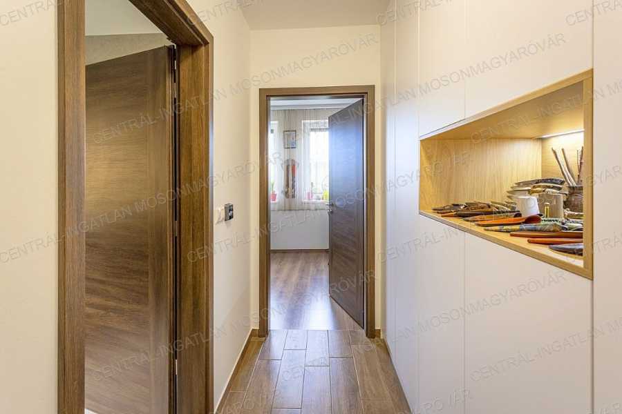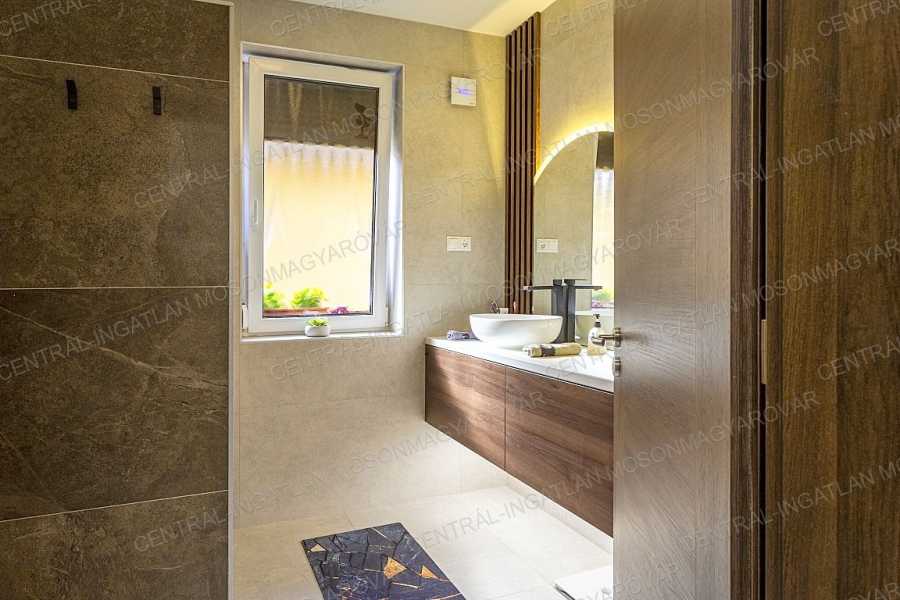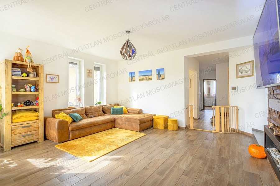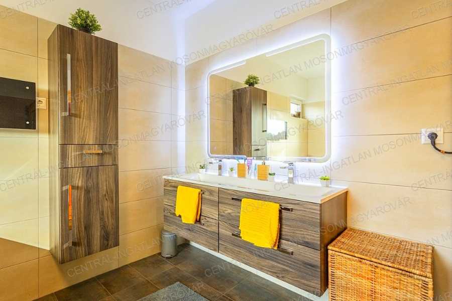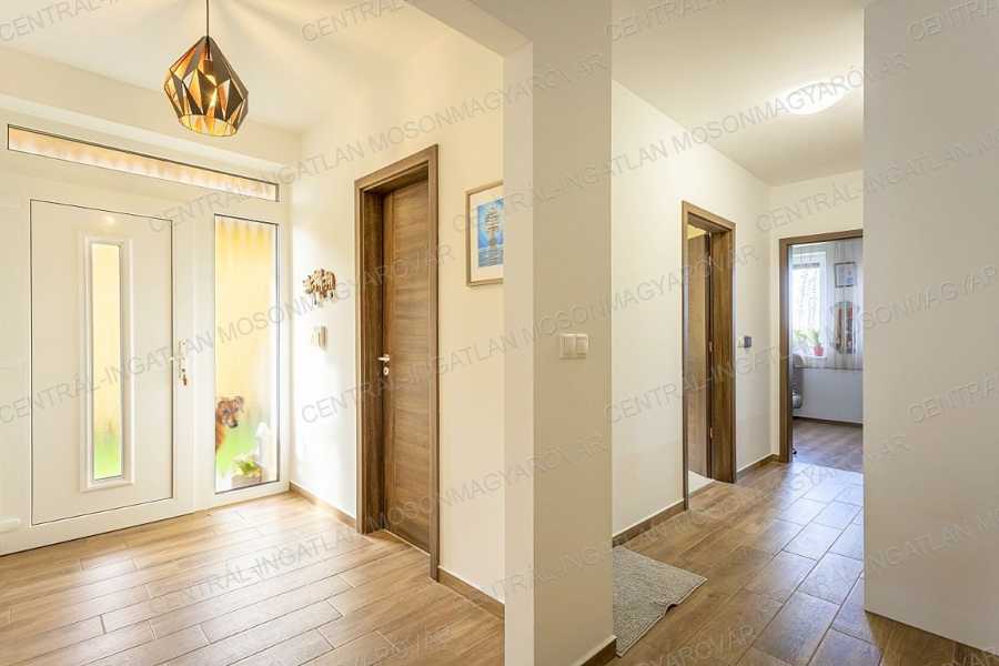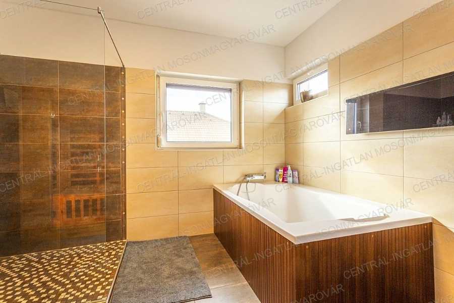 Mosonmagyaróváron, fiatal lakóparkban, stílusosan megépült, nappali + 4 szobás, minőségi családi ház itt a CENTRÁL-INGATLAN kínálatában. A 711 m2-es telek minden irányból belátás mentes. Szomszéd házakból, utcáról nincs rálátás a kertre. A kert parkosított, fúrt kúttal, automata öntözőrendszerrel, műhellyel-tárolóval a kerti eszközök tárolására és egy méretes grillterasszal. -A déli tájolás minden évszakban világossá varázsolja a főbb helyiségeket és a fedett teraszokat. A lakórész teljes területén padló- és falfűtés készült. Nyáron a kútvizes falhűtés és egy klíma biztosítja a kellemes hőmérsékletet. -A belső terek tágasak, kényelmes elosztással. A dupla-garázs is fűtött. A garázst és a lakórészt egy háztartási helyiség köti össze, itt minden elfér. -A földszinten nappali-étkező készült, a konyha a szomszédos helyiségben található (végre nem amerikai konyha!), tágas, de két lépéssel minden elérhető. A kamra is hasznos helyisége a háznak. -A szülői hálószoba is a földszinten található, mellette fürdővel. További 3 hálószoba az emelten kapott helyet. -Az emeleten egy tágas közlekedőből nyílik 3 hálószoba, egy fürdő (fürdőkáddal, szaunával, zuhanyzóval) és egy külön wc. -A fűtés kondenzációs gázkazán biztosítja mindenhol padló- és falfűtéssel. A hűtés is megoldott. Szobánként külön termosztáttal szabályozható a hőmérséklet. -Felkerült egy 8 kWp-os napelemrendszer is, ami jelenleg jelentős többletet termel. Két elektromos autó töltését is megtermeli. Éves „szaldó” elszámolással. -A kert gyönyörűen parkosított, öntözőrendszerrel egy 30m2-es kerti házzal (műhely, tároló), mellette egy nagy, fedett grillterasszal. -A 2017-es épület 3 rétegű üveggel szerelt ablakokkal készült, mindenhol redőnnyel és szúnyoghálókkal, homlokzaton hőszigeteléssel. -Kamerarendszer, riasztórendszer működik. Applikációról vezérelhető a fűtés, kamerarendszer, garázskapu, stb. -A képek magukért beszélnek. A stílus klasszikus, nem megy ki a divatból. A minőség kiváló. Az adottságok kivételesen jók. És még van legalább egy különlegessége ennek a családi háznak ………. ezt személyesen elmondom! Meg kell nézni! Vásárolna és szükség lenne hitelre is? Kollégám díjmentes, bank független hitel-ügyintézéssel áll rendelkezésére.