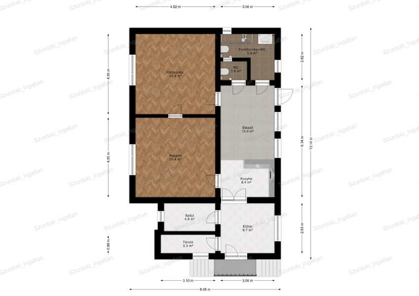 Általános információk Szeged közkedvelt, családi házas övezetében kínálunk eladásra egy tégla építésű, két lakrészből álló családi házat, belső udvarral és garázzsal. Az ingatlan egy 486 m²-es telken helyezkedik el, melynek KNY-i tájolásának köszönhetően egész nap természetes fényben úszik. Az ingatlant az 1940-es években építették, mely korának megfelelő állapotnak örvend. Az épület alapzata vízszigetelést igényel! Az elmúlt évek során korszerű, műanyag nyílászárókra cserélték az ablakokat és ajtókat, melyek dupla, és háromrétegű üvegezéssel ellátottak. Ablakai szúnyoghálóval és redőnnyel egyaránt felszereltek. Az ingatlan háromfázisú villanyhálózattal ellátott, mely jelenleg 3x16A. Ez igény szerint bővíthető, Fi relével rendelkezik. A főépület nettó alapterülete 86,5 m² mely 2 szobával, étkezős konyhával, több tárolóval, előtérrel, külön nyíló illemhelyiséggel és fürdőszobával rendelkezik. A melegvizet gázbojler biztosítja, fűtése gázkonvektoros. A tervezett fűtéskorszerűsítés miatt elbontásra kerültek a gázkonvektorok, melyek igény szerint visszaállíthatóak. A kellemes hőmérsékletről egy hűtő-fűtő klímaberendezés gondoskodik. Az ingatlan riasztórendszerrel ellátott. A főépület 2 bejárattal rendelkezik, a hátsó bejárat a belső udvari 12 m²-es fedett terasz felé nyílik. Melléképülete egy különálló lakrészt biztosít, mely 17 m². Az itt kialakított garzon lakás főzőfülkével, előtérrel és fürdőszobával rendelkezik. Ablakai dupla üvegezéssel ellátott műanyag nyílászárók, bejárati ajtaja szigetelt, műanyag biztonsági ajtó. Fűtéséről gázkonvektor gondoskodik, a melegvizet villanybojler állítja elő. A telek méretéből adódóan egy tágas, szintén tégla építésű garázs került kialakításra, melynek nettó alapterülete 19,5 m². A gépjármű mellett elég hely marad egyéb tárgyak tárolására, polc rendszer kialakítására. Igény szerint akár műhelynek, nyári konyhának átalakítható. A belső udvaron fúrt kút is megtalálható, melyről a fák és virágok locsolása megoldható. Az ingatlan főbb jellemzői Lakótér: összesen nettó 103,5 m² (főépület+melléképület) Telek: 486 m², rendezett kerttel, amely gyümölcsfákat és pihenésre alkalmas zöldterületet kínál Beépítettség: Jelenleg 31%, mely 40%-ra bővíthető Garázs: különálló, kényelmes garázs az udvarban Terasz: 12 m²-es belső udvari fedett terasz Nyílászárók: hőszigetelt műanyag ablakok redőnnyel és szúnyoghálóval (2 és 3 rétegű) Fűtés: gázkonvektor, hűtő-fűtő klíma Szobák és lakrészek: az ingatlanban 3 egész szoba, 2 fürdőszoba, konyha, található, mely 2 különálló lakrészre oszlik, ideális több generáció számára is. Belső kialakítás és lehetőségek Az telek beépíthetősége 40%, melyből jelenleg 31% van beépítve. Ez lehetővé teszi a további bővítéseket. Az ingatlan helyiségei világosak, és kiváló alapot nyújtanak a személyre szabott átalakításokhoz. A ház jelenlegi kialakítása ideális több generáció számára, de bérbeadás vagy vállalkozási célú hasznosítás esetén is remekül funkcionál. A fedett terasz további kikapcsolódást nyújt, mely kiváló helyszíne lehet a hétvégi kikapcsolódásnak, családi, baráti összejöveteleknek. Kültér és környezet Elhelyezkedését tekintve az ingatlan Szeged egyik legnyugodtabb családi házas övezetében található, mindössze 7 percre a belvárostól. Az utca rendezett, karbantartott, többnyire felújított és új építésű házakkal. A környék csendes és biztonságos, ugyanakkor jól megközelíthető. A villamosmegálló 6 perc sétatávolságra, a buszmegálló mindössze 450 m-re elérhető. Minden fontos szolgáltatás a közelben megtalálható. Gyógyszertár, cukrászda, kisebb boltok és üzletek (pizzéria, dohánybolt, éjjel nappali, kertészet). Kinek ajánlom? Többgenerációs családoknak, akik kényelmes, elkülöníthető lakrészeket keresnek egy otthonon belül. Befektetőknek, akik szálláshelyként, irodaként vagy akár rendelőként hasznosítanák az ingatlant. Olyan vásárlóknak, akik csendes, nyugodt környezetben keresnek tágas, ugyanakkor központi elhelyezkedésű családi otthont és a saját elképzeléseiket szeretnék megvalósítani. Az ingatlan 1/1-es tulajdonnal rendelkezik, és akár azonnal birtokba vehető. További információért és időpont egyeztetésért keressen bizalommal!