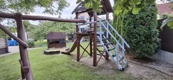 Nyíregyháza-Borbánya csendes utcájában, a városhoz közelebbi részen családi ház eladó. Földszint: amerikai konyhás nappali, 3 hálószoba, konyha, kamra, közlekedő, fürdőszoba WC-vel, terasz, tornác Emelet-tetőtér: nappali, 2 hálószoba, fürdőszoba WC-vel, kazánház (szigetelt 20cm) Pince: az épület alatt (kb.60nm) Melléképület, 3 részes könnyűszerkezetes tároló (48nm) A ház lakótere 220nm, a terasz kb. 35nm, a tornác kb. 35nm Szilikátból épült, 1998-ban, szigetelve van (10 cm) Az emelet 2021-ben lett beépítve A fűtésről Ariston kondenzációs kazán és cserépkályha gondoskodik, a nappaliban padlófűtés csatlakozási lehetőség elő lett készítve A hűtést klíma biztosítja Nyílászárók műanyagok, 1 tetőablak hőszigetelt fa Rezsije nagyon kedvező!!! A részben térkövezett, füvesített udvaron gyümölcs fák (cseresznye,kajszib, dió, alma) találhatók Kiváló választás nagy családosok, összeköltözők, világos, nagy tereket szerető és kereső ügyfeleink számára. Az ingatlan előzetes egyeztetés alapján hétköznap 7-15 óra között, illetve hétvégén vasárnap megtekinthető. Lakáshitel, Babaváró, Kedvezményes kölcsön bankfüggetlen ügyintézését is vállaljuk. Keressen bátran, tudjon meg többet, komoly érdeklődés esetén tekintsük meg!