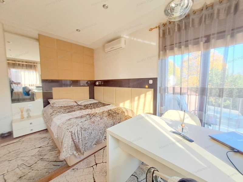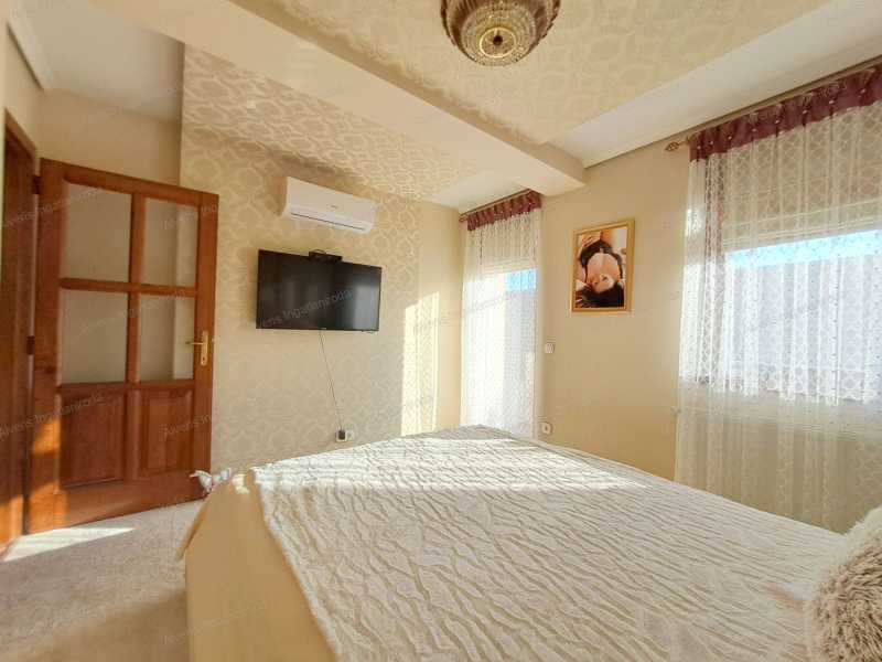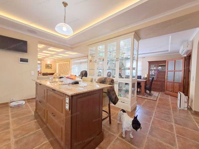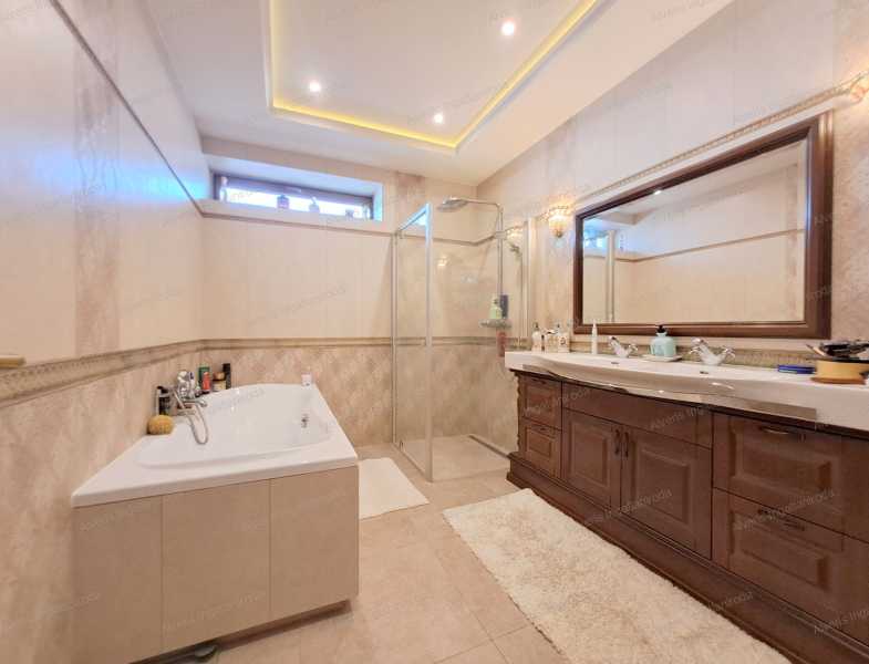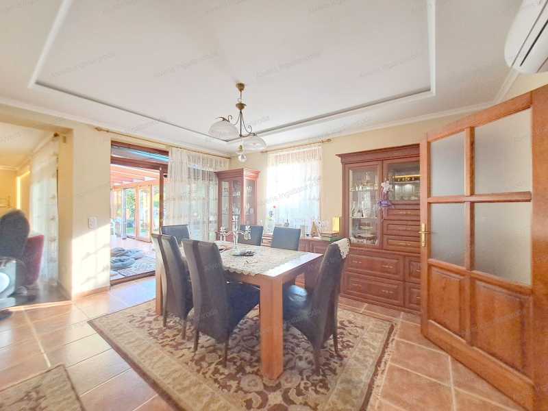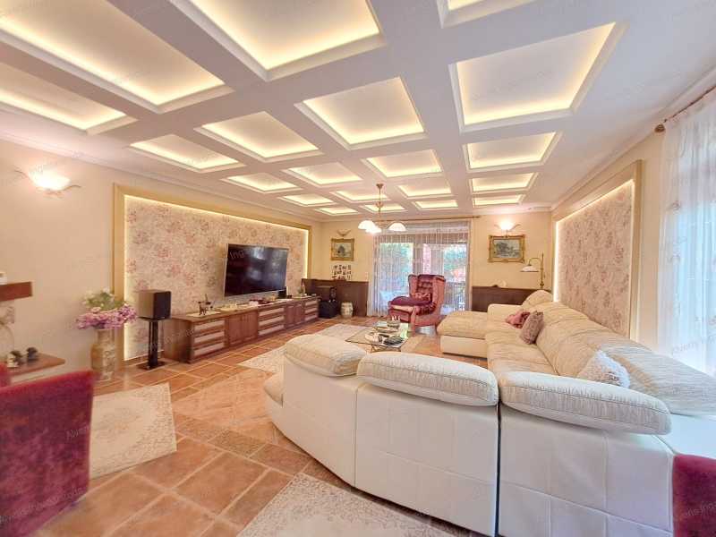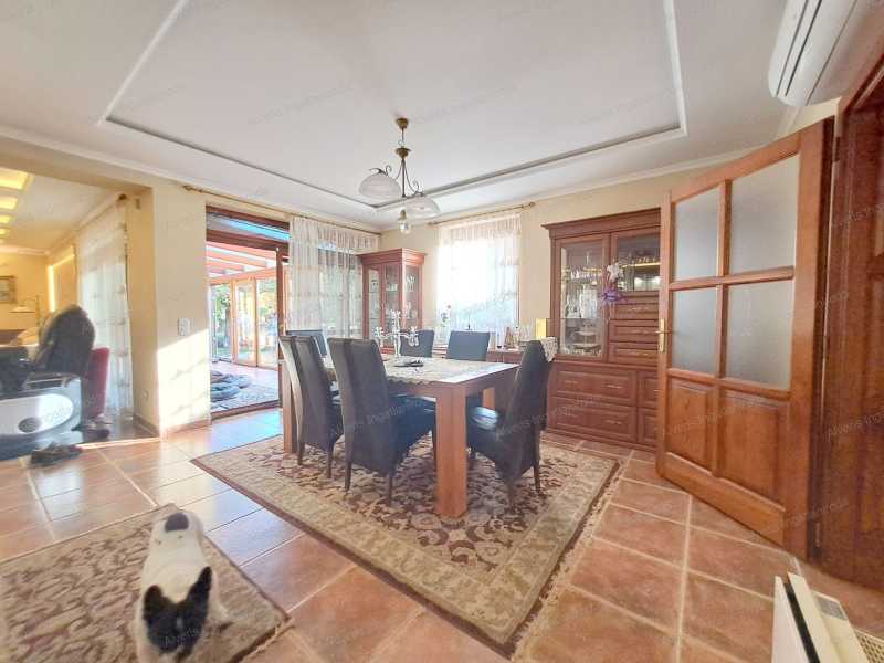 A romantikának érzelmileg túlfűtött kiáramlásában, kastélyok, főúri rezidenciák kuriális, intellektuális kifinomult formáiban kínálok vásárra egy 247 m2-es családi villát, amelyet a lakberendezői meglátás és az egyéni ízlés ötvözete keltett életre, szabtak a mai kor arculatának igényeire. A meseszép otthon Nyíregyháza Orosi út elején, csendes aszfaltozott zsákutcájában kapott méltó helyet, nemesi kiváltságokkal bíró téli-nyári kertjével, 158 m2-en fitness-wellness és borospince kényeztetéssel, a középkori fogadók hangulatát idéző nyári lakkal, amelyben a gasztronómia művészetének a képzelet szülhet határt. Belső világában 4 szoba, 2 fürdőszoba, 4 WC, konyha mesteri módon megmunkált üvegborítású tálalószekrényével, majd a nappali impozáns kandallójával örvendezteti lakóit. Négy keréken járó fogatainkból kettő is elfér a parkolóházban. Szilárd, rendíthetetlen tartását a kastélyfalak mintájára 38 cm-es Porotherm téglából és 10 cm-es szigetelés borításával emelték fel. Zord, hideg hónapokban talpunk alatt érezhetjük az otthon melegségét, kivéve a hálókban, ahol fűtőtesteket építettek. Nyári tikkasztó hőségben a ház hűtésére is nyílik lehetőség. Az erdő ajándékozta terméséből 3 rétegű üvegezéssel faborítású nyílászárók, villanyredőnnyel, szunyoghálóval nyújtanak védelmet és engednek szemünknek gyönyörűséget a kilátásban. Két utcából nyílik járat a 2000 m2-es birtokra, amelyekből szépséges kövekkel lerakott udvarra érkezünk, ahol kertészekkel gondosan ápolt növényzet, lenyűgöző park fogadja vendégeit. A kert tava mellett pezsgőfürdő enyhíti megfáradt lelkünket és testünket elárasztva földi javakkal, segítve a szemlélődést. A helyiségekben mindent látó őrszemek vannak elhelyezve, riadalmat keltve és távol tartva az útonállókat. Az emberi kéz által alkotott varázslatosan kimunkált bútorzat, a vásár külön alkujának részese lehet. Amennyiben a leendő Gazda, Várományos megérkezne, úgy bízva, javadalom nélkül adunk betekintést, segítve a megegyezést.