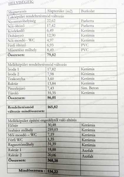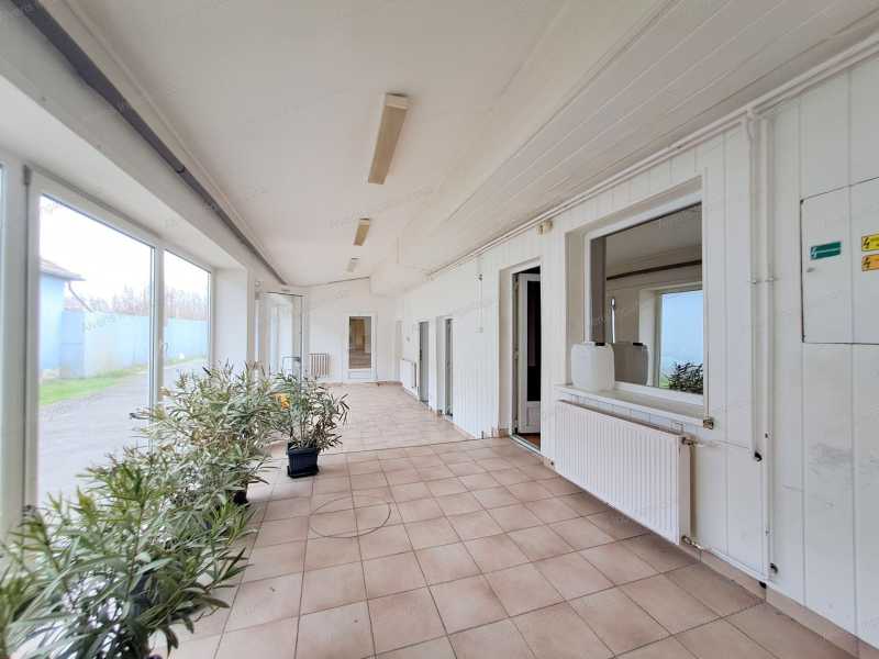 Nyíregyházától néhány kilométerre Nyírpazony családi házas övezetében, aszfaltozott utcában, eladásra kínálok egy 1500 m2-es telken elterülő, 3 szobával, fürdőszobával, konyhával rendelkező 80 m2-es önálló családi házat és az ehhez tartozó, a vállalkozói szféra számára egyedi lehetőségeket magában hordozó, AZONNAL BIRTOKBA VEHETŐ 455 m2-es épületkomlpexumot. Az ingatlan azonnal hatalmába keríti és fantáziára serkenti az emberi elmét, hiszen lehetőséget kínál cégek, alapítványok, egyesületek, a vállalkozói szegmens különféle tevékenységeire, így többcélú intézményben megtalálva funkcionalitását, gyártási-, termelési-, raktározási-, szociális-, nevelési-oktatási-, fejlesztői centrum, munkásszálló, irodaház, egyéb vállalkozás elindíthatja lendületes, teremtő erejét. Az ingatlan-nyilvántartás tartalma szerint az épületegyüttes „kivett lakóház, udvar” minősítéssel szerepel a földhivatali bejegyzésben. A helyiségek funkciója, megnevezése legutóbbi rendeltetésmód szerint: - nyomtatóhelyiség, női öltöző, közlekedő, dohányzó, női mosdó, WC, férfi öltöző, műszerész műhely (összesen 79,82) - iroda 1, iroda 2, teakonyha, raktár, pincelejáró, tároló (összesen: 86,01 m2) - előtér, műhely, női mosdó, WC, férfi WC, műhely, raktár 1, raktár 2 (összesen: 368,38 m2) Az ingatlan értékei: - tégla falazat - műanyag nyílászárók, redőny - fűtés: gázkazán, radiátor hőleadással - ipari áram - parkolás az udvarban és a garázsban Amennyiben felkeltette érdeklődését ez a remek BEFEKTETÉSNEK IS KIVÁLÓ LEHETŐSÉG, keressen bizalommal és tekintsük meg együtt!