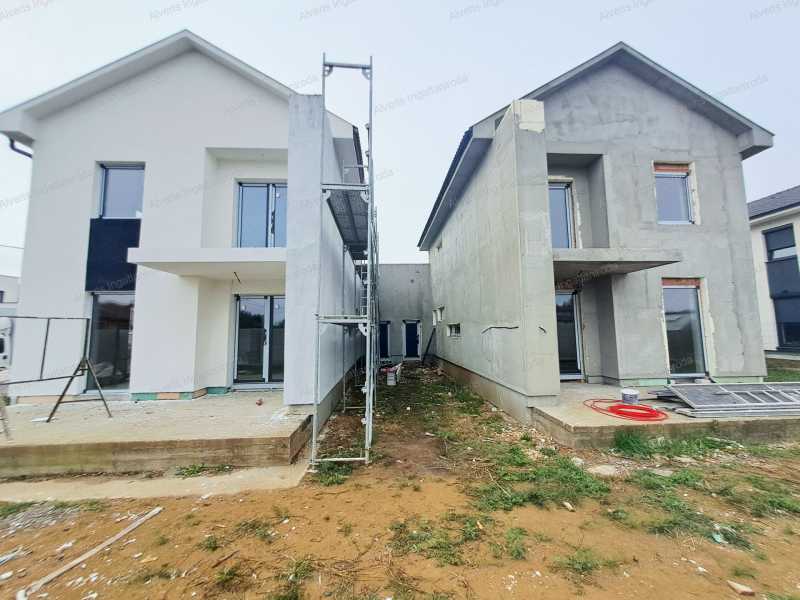 Eladó modern ikerház Nyíregyháza–Oros városrészen! Nyíregyháza centrumától mindössze 5 percre, csendes, térkövezett utcában kínálunk eladásra egy exkluzív, kétszintes, csak a garázsoknál érintkező ikerházat, amely ideális választás családoknak és mindazoknak, akik nyugodt környezetben, de a belvároshoz közel szeretnének élni. 149 m² lakótér – 4 hálószoba + amerikai konyhás nappali A modern elrendezésnek, egyedi tervezésnek köszönhetően tágas, világos élettér várja új tulajdonosát. A nappali és konyha egy légtérben kapott helyet, így tökéletes helyszínt biztosít a közös családi pillanatoknak. A szinteken külön fürdőszobák biztosítják a különleges mindennapi komfortélményt. 420 m² saját kert + nagy terasz Kiváló lehetőség pihenésre és szabadtéri programokra. A házhoz tartozik egy 29 m²-es kétállásos garázs, amely kényelmes parkolást és extra tárolóhelyet kínál. - Korszerű technológia – alacsony rezsi - Porotherm 30-as tégla + 15 cm szigetelés - 3 rétegű műanyag nyílászárók - Hőszivattyús padló- és falfűtés - Napelemes rendszer, központi porszívó és redőnyök előkészítése - Az ingatlan energetikailag kiemelkedően hatékony és fenntartható. - Személyre szabható belső tér A burkolatok, szaniterek és belső nyílászárók kiválasztása az Ön ízlésére szabható, így valóban saját stílusában valósíthatja meg álmai otthonát. Átadás: 2025. november Ne maradjon le erről a különleges lehetőségről! Érdeklődjön most, és biztosítsa új otthonát egy családbarát, modern környezetben, Nyíregyháza frekventált szegmensében!