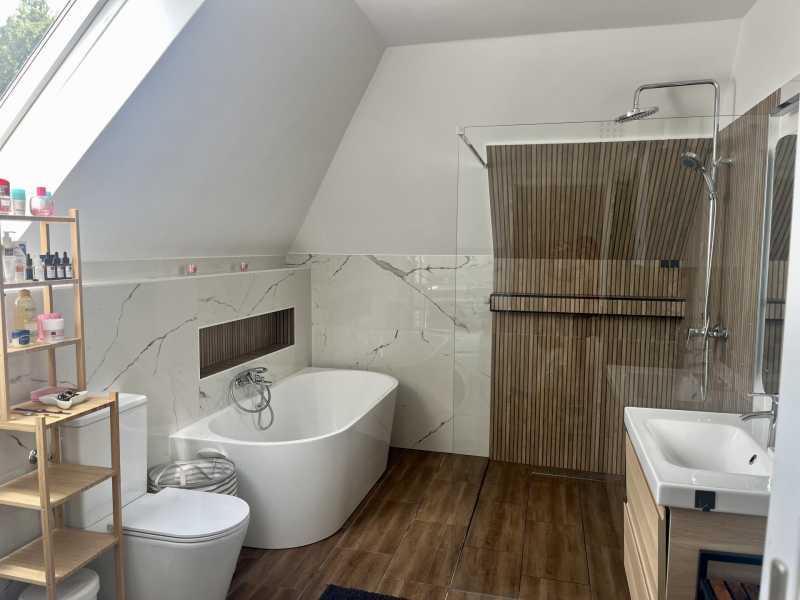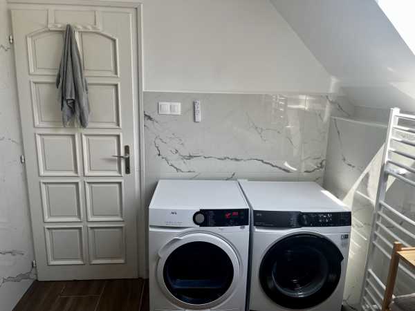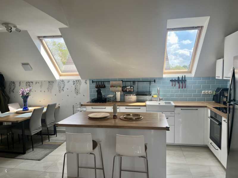 Eladó lakás; 83 m²; 89,9 M Ft; Budapest XVIII. kerület, Újpéteritelep Eladó egy 83 m²-es, 1+2 félszobás, tetőtéri lakás, saját kertrésszel, Budapest XVIII. kerületének csendes, kertvárosi részén, egy 3 lakásos társasházban. Főbb jellemzők: Alapterület: 83 m² Elrendezés: amerikai konyhás nappali + 2 félszoba Erkély: 4 m², délnyugati tájolású Saját udvari gépkocsibeálló Kert használat Privát, zárt lépcsőház + extra tároló + padlás Belső kialakítás: Világos nappali amerikai konyhával és étkezősarokkal Teljesen gépesített konyha konyhaszigettel és bőséges tárolóhellyel Két WC: különálló + fürdőszobában Fürdőszoba: felújított, zuhanyzóval és káddal Klímával felszerelt nappali Műszaki állapot: Korszerű kondenzációs gázkazán (radiátoros fűtés) Klíma a nappaliban (fűtésre és hűtésre) Jó állapotban lévő nyílászárók Délnyugati fekvés, napfényes helyiségek Környezet és infrastruktúra: Csendes, családbarát környék, barátságos lakóközösség A társasházban 2 lakás és 1 üzlethelyiség található Közelben: bevásárlási lehetőségek, óvoda, iskola, orvosi rendelő Kiváló közlekedés: Kőbánya-Kispest 20 perc, repülőtér és belváros könnyen elérhető