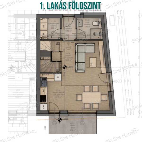 ÚJ ÉPÍTÉSŰ, PRÉMIUM MŰSZAKI TARTALMÚ OTTHON 1. lakás elosztása: Földszint: Előtér | burkolat: kerámia | terület: 2,52 m2 Mosókonyha | burkolat: kerámia | terület: 3,06 m2 Fürdőszoba | burkolat: kerámia | terület: 3,60 m2 Nappali | burkolat: laminált parketta | terület: 16,00 m2 Konyha-étkező | burkolat: laminált parketta | terület: 14,15 m2 Terasz | burkolat: térkő | terület: 8,18 m2 Emelet: Közlekedő | burkolat: gres | terület: 3,05 m2 Fürdőszoba | burkolat: kerámia | terület: 5,04 m2 Szoba | burkolat: laminált parketta | terület: 8,48 m2 Szoba | burkolat: laminált parketta | terület: 11,91 m2 Szoba | burkolat: laminált parketta | terület: 8,95 m2 Lépcsőtér | burkolat: laminált parketta | terület: 4,05 m2 1. lakás – 110.500.000 Ft 2. lakás – 104.900.000 Ft 3. lakás – 104.900.000 Ft 4. lakás – 94.500.000 Ft (Helyett 99.900.000 Ft) 5. lakás – 94.500.000 Ft (Helyett 99.900.000 Ft) 6. lakás – 112.900.000 Ft 7. lakás – 99.900.000 Ft 8. lakás – ELADVA 9. lakás – ELADVA Modern társasházi lakások elérhető áron, kiemelkedő energetikával! Eladó új építésű lakások a Bezerédi utcában, kiváló minőségű kivitelezéssel, átgondolt műszaki megoldásokkal és prémium anyaghasználattal. A projekt a jelenleg érvényes kiviteli tervek és magas műszaki követelmények szerint épül. Főbb műszaki jellemzők Szerkezet és szigetelés POROTHERM 25 N+F vázkerámia falazat 20 cm EPS homlokzati hőszigetelés Födém: vasbeton + szeglemezes tető, minimum 20 cm össz-hőszigeteléssel 3 rétegű üvegezésű, szürke fóliás prémium PVC nyílászárók Padlóban 2–3 cm lépéshang-szigetelés Talajnedvesség elleni többrétegű vízszigetelés Minőségi bádogos elemek (szinterezett alumínium) Gépészet és fűtés Lakásonként saját 9,5 kW monoblokk hőszivattyú Padlófűtés az egész lakásban Lakásonként 2 db fancoil beltéri egység (hűtés) HMV ellátás hőszivattyúról Fürdőkben szükség esetén gépi szellőzés Minőségi szerelvények (Alföldi, Ferro, M-acryl stb.) Elektromos és okos előkészítések Napelem védőcsövezés előkészítve Elektromos autótöltő hely védőcsövezés előkészítve TV/internet minden szobában előkészítve Fehér Schneider Sedna szerelvények Kaputelefon rendszer Kül- és beltéri lámpák közös területeken kiépítve Burkolatok és belső terek Előszoba, fürdő, WC: hidegburkolat (max. 60×60 cm) Szobák, nappali-konyha: laminált parketta Glettelt, fehérre festett falfelületek Fürdőben 2,1 m magasságig csempézés Wc-ben 1,2 m magasságig csempe Kád mögött/belőtt csempézés nem készül Konyha falburkolat nem része a műszaki tartalomnak Külső környezet és kert Térkövezett járdák és teraszok Rendezett tereprendezés termőfölddel Utcafronti kerítés: személykapu, autókapu, postaláda, kukatároló Lakások között min. 150 cm magas kerítés Kertekben fagycsap kiállás Telken belüli nagy kapacitású csapadékvíz-szikkasztók A kivitelezés nem tartalmazza konyhabútor, gépek lámpatestek a lakásokban riasztórendszer és internet kiépítés (csövezés megvan) beépített bútorok, lakberendezés