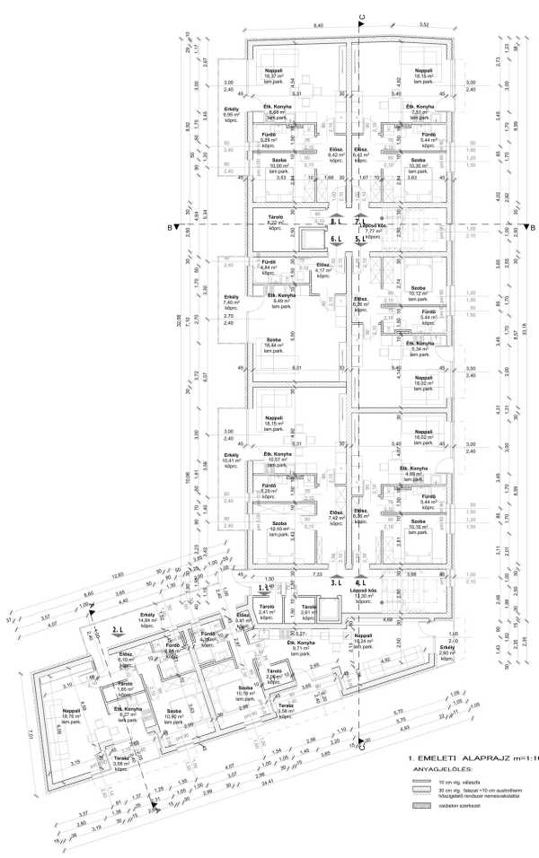 Nyíregyháza Belvárosában eladásra kínálok 2027. nyarán 100 %-os készültségben átadásra kerülő, liftes, 3 szintes, 20 lakásos, zárt belső udvaros, garázs- il. kocsibeállóval rendelkező, új építésű lakásokat! - tégla építésű, 15 cm-s szigetelés, 3 rétegű műanyag nyílászárók, kondenzációs kazán, padófűtés, klíma A belső nyílászárók, burkolatok, szanitereket a leendő tulajdonos választhatja. - 1.emelet - 45 m2-en : amerikai konyhás nappali, hálószoba,fürdőszoba, tároló, előszoba, - lift vásárolható garázs 8,5 - 9,5 M Ft, elektromos garázskapu kocsibeálló 2,5 M Ft Belváros adta előnyök, iskolák, üzletek, szórakozási lehetőségek. Bővebb információért, teljes körű, ingyenes, bankfüggetlen ügyintézéssel várom hívását!