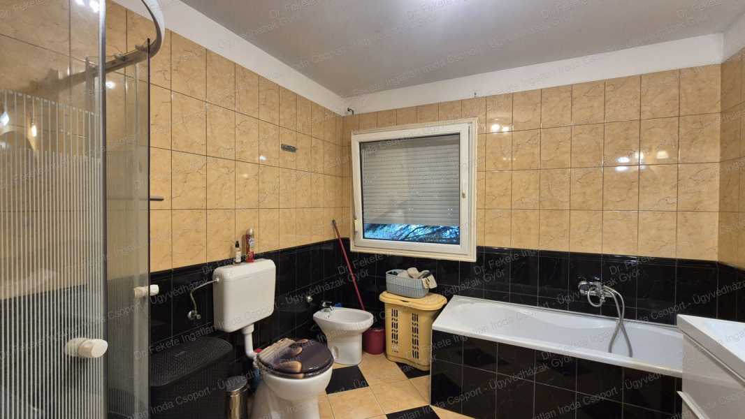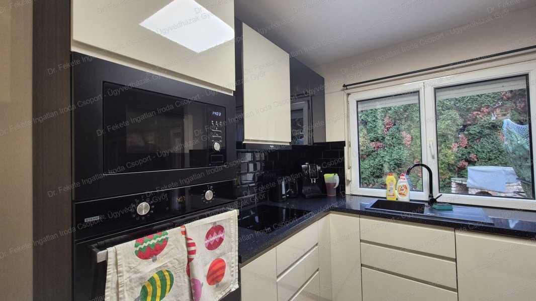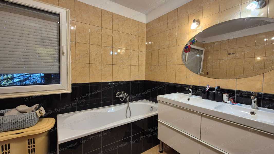 Téged vár Győrújbaráton ez az exkluzív családi fészek, ha te is a természet közelségét szeretnéd élvezni minden egyes napodon! Ez a domboldalra épült ingatlan remek panorámával, maximális privát szférával rendelkezik, nappali + 3 szobás 114,62 nm nettó lakótér + cca. 30 nm terasz, a telek 1490 nm, valamint 2 állásos zöldtetős támfalgarázs (cca. 45nm), ami rátok vár. Nézzük a házat, a videót se hagyd ki! 2001-ben épült, kanadai licenc alapján, a Syntec Syntrend technológia szerint, környezetbarát, természetes építőanyagok használatával. Lásd a képek között hogyan készült az alap és a felépítmény (fa, könnyűszerkezetes ház), bombabiztos alapokra Masszív támfal Szigetelt épület 7 kW-os inverter napelem rendszer, 5,28 kW teljesítménnyel, ami 3 éves, 20 év garanciával! (tovább bővíthető) Minimális rezsi 20 000 / hó A fűtés két körös, padlófűtés, valamint a hálókban radiátorok biztosítják a meleget Kondenzációs kazán Klíma Kémény – lehetőség kandalló kialakításához Nyílászárók műanyagok 2 rétegű üvegezéssel, redőnnyel szerelve Fürdőben: kád, zuhanyzó, WC, bidé, törölközőszárítós radiátor, ablak Gardrób – 4,96 nm Modern, 2 éves konyhabútor gépekkel Kamra a konyha mellett – 3,8 nm Vendég WC kézmosóval -2,2 nm A parkosított kertben: Medence ideális a nyári lazításhoz (7,2 m * 3,6 m * 1,2 m), Kerti tavacska Kerti grill, sütögető Fából épült tároló biztosít helyet a kerti szerszámoknak 3 helyen történő vízelvezetés (locsoláshoz, medence feltöltéshez,..) 2 állásos zöldtetős támfalgarázs, cca. 45 nm 46 nm térkövezett 2 db felszíni GK beálló Alig várom, hogy megmutassam, hogy beleszeress ebbe az ingatlanba, hívj!