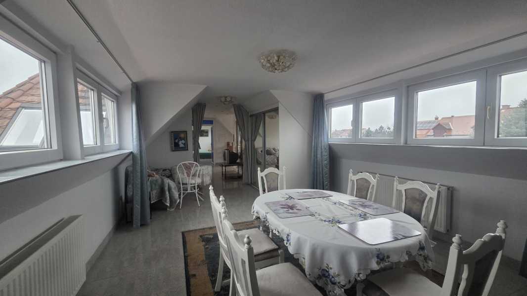 Hévíz központ zöldövezetének csendes utcájában Hévíz kedvelt magaslatán kősziklára épült erős kővár hajlék tetején a város felett várja szerencsés új tulajdonosát boldog édesanyám megvalósult álom-galériája. A lakás tágas, napfényes terekkel várja új tulajdonosát: - Félkör-panorámás nappali, meghitt hálószoba - Otthonos konyha tágas étkezővel - 2 fürdőszoba a kényelemért - egyedi mérőórák - korszerű műanyag nyílászárók - jól kihasználható, teres belső elrendezés Ez a lakás ideális választás mindazok számára, akik értékelik a nyugodt környezetet, a praktikus megoldásokat és a kiváló elhelyezkedést. Az alaprajz tájékoztató jellegű. További információért hívjon bizalommal