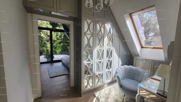 Eladásra kínálunk a 2.kerület legkedveltebb részén, 5 percre a Szél Kálmán tértől, egy bruttó 189nm-es + 48nm terasz, 500nm kert, nappali +3 szoba, 3 fürdős, luxus villalakást, ami 2022-ben legmodernebb műszaki megoldásokkal, és minőségi anyagokkal épült újjá. Saját 36nm garázzsal, 500nm saját kertel. Ez a lakás nem csupán otthon, hanem hosszútávon értékálló befektetés is. 5 perc séta távolságra van a 3 kiválló iskola, ( SEK, WALDORF, Kínai iskola, óvoda, és bölcsöde is.) Főbb paraméterek: - lakótér 159nm - teraszok 48nm : -16nm pergolával fedett, déli tájolású -11nm tetővel fedett, északi tájolású -21nm panoráma terasz - privát kert 500nm, parkosítva, automata öntözőrendeszer, világítással. - 2 hálószoba (saját fürdővel) +1 hálószoba kialakítható - 3 komplett fűrdő + vendég wc - privát fűtött garázs 36nm, közvetlen bejárat a lakásba, elektromos autó töltő lehetőség. - amerikai konyhás nappali étkező egyedi dizájn bútorokkal, beépített gépekkel - saját wellness rész szaunával, pihenővel, dizájn tusolóval - mosókonyha Miele gépekkel - Wolf hőszivattyús padló/mennyezet hűtés-fűtés, minden helyiségben távolról is vezérelhető termosztáttal - Wolf hővisszanyerős légtisztító szellőztető rendszer - GEO áram - Fatüzelésű panoráma kandalló nappaliban - Bioetenol kandalló háló/fürdőben - automata hőszigetelt aluminium redőnyök - 3 rétegü üvegezésű, betörésgátlós nyílászárók A lakóingatlan és a kizárólagos használatú kertrész vételára 449M Ft; A 2-állásos gépkocsitároló 21M Ft; A maradó, illetve beépített bútorok, berendezések ára 50.000,- Euró A fajlagos ár 1.98 M/nm, amely jelentősen kedvezőbb, mint a környék luxusprojektjeinek az átlag ára. Ez a lakás nem csupán otthon, hanem hosszútávon értékálló befektetés is, különösen ekkora méret, technológiai felszereltség, és saját kert mellett. Jöjjön nézze meg, garantáltam beleszeret. várom megtisztelő hívásást.