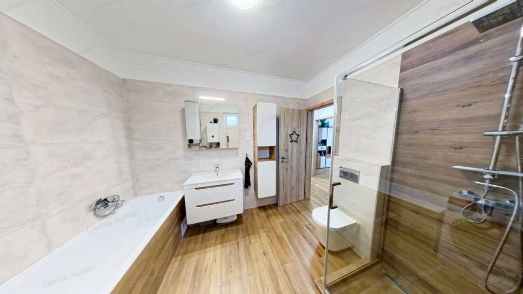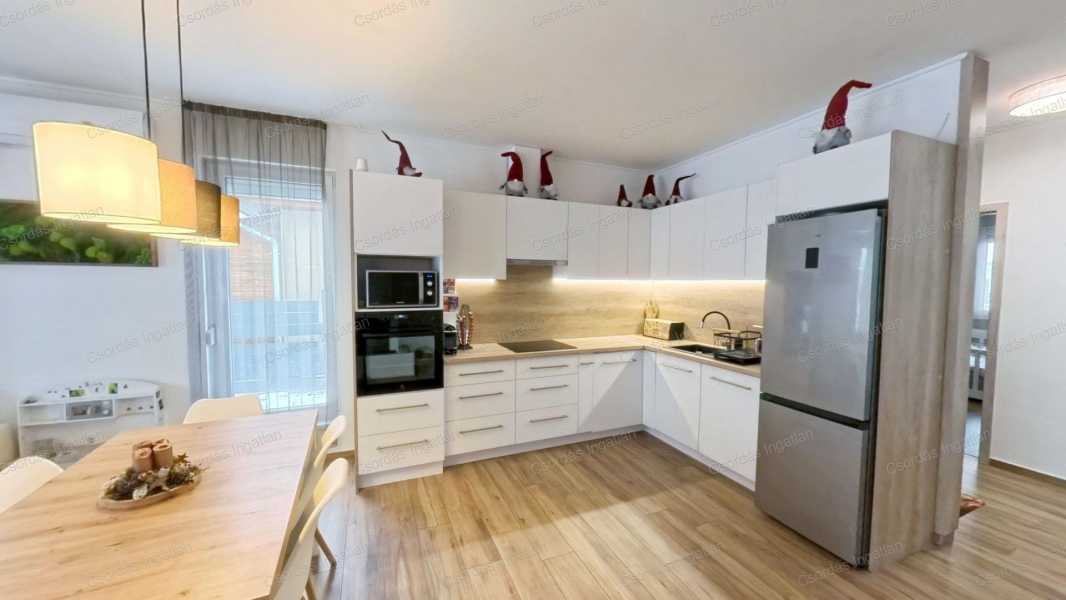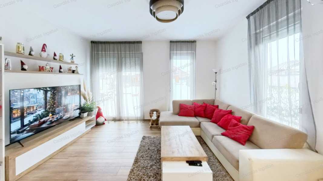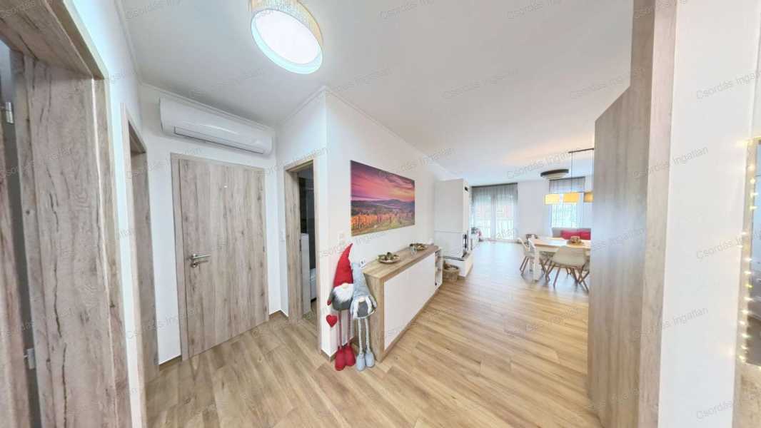 5 szobás, 2023-as, ÚJ ÉPÍTÉSŰ CSALÁDI HÁZ eladó Herenden. Az Éden lakóparkban található házra jellemző a RENDKÍVÜL VILÁGOS, TÉNYLEG TÁGAS TEREK. Belépve egy kényelmes méretű előtérbe érkezünk. Innen nyílik balra az egyik hálószoba, mellette még kettő. A három hálószoba egyforma méretű. A harmadik szoba mellett a KÜLÖN WC van mosdóval, a szobával szemben a valóban tágas, MODERN FÜRDŐSZOBA, melyben kád és zuhanyzó is rendelkezésre áll. A fürdőszobában kapott helyet a BOSCH ELEKTROMOS KAZÁN és az ARISTON okos villanybojler is. A bejárattól jobbra a konyha-étkezőbe juthatunk, amely egy légtérben van a nappalival. A konyhában EGYEDI TERVEZÉSŰ, IGÉNYESEN BEÉPÍTETT, MODERN KONYHABÚTOR van, melyben minden fontos konyhai gép (Elektrolux sütő és indukciós főzőlap, Bosch mosogatógép, szag elszívó) beépítésre került. A nappaliból nyílik a negyedik hálószoba. Az igazán világos, tényleg tágas nappaliból közvetlenül léphetünk ki a HATALMAS, 40 M2-ES TERASZRA, ahonnan egyből a kertbe juthatunk. A kert végében egy EGYEDI ÉPÍTÉSŰ, PRÉMIUM MINŐSÉGŰ 15 m2-es, fából készült MELLÉKÉPÜLET segít a tárolásban. A házban PADLÓFŰTÉS biztosítja a meleget elektromos kazánnal, valamint a nappaliban egy 8 kW-os kandalló teszi otthonosabbá a hideg napokat. Két HŰTŐ-FŰTŐ KLÍMA is beszerelésre került, hogy még komfortosabb életet biztosítson a bent élők számára. Az elektromos kazán és a két klíma egyaránt KEDVEZMÉNYES „H” TARIFÁRÓL működik. Ennek köszönhetően ez télen mindössze 15 000,- forintba kerül. Az elektromos hálózat 3x20 A. A nyílászárók 3 rétegű üvegezésűek, mindegyiken REDŐNY ÉS SZÚNYOGHÁLÓ is van. A redőnyök elektromos és kézi működtetésűek vegyesen. A ház mellett TÉRKÖVEZETT AUTÓBEÁLLÓ van több autó számára. A közelben óvoda, bölcsőde, iskola, játszótér, boltok, gyógyszertár, orvosi rendelők, buszmegálló pár perces sétára elérhető. A vásárláshoz illetékmentesség, állami támogatás, Otthon Start Hitel, Csok Plusz, Falusi Csok igényelhető! NÉZZE MEG az ingatlanról készült VIRTUÁLIS SÉTÁT is, „sétáljon végig” saroktól sarokig ebben a kitűnő elosztású házban! https://my.matterport.com/show/?m=SBqKzEshiJK A virtuális séta bal alsó sarkában kis ikonokkal tetszés szerint választhat a séta, a kétdimenziós alaprajz, a háromdimenziós alaprajz, a bútorozott és a bútor nélküli verzió, valamint a méretezés között. TÖKÉLETES VÁLASZTÁS A JÓ VÉTELHEZ! Ez az ingatlan a Csordásingatlan kínálatában nem csak egy átlagos ház, hanem EGY IGAZI OTTHON, ahol minden apró részlet az Ön kényelmét szolgálja. Ne hagyja ki ezt a lehetőséget! HÍVJON, és nézze meg személyesen is ezt a kivételes adottságú ingatlant – találja meg benne új élete színterét! Bankfüggetlen INGYENES hitelügyintézés, INGYENES FALUSI CSOK, OTTHON START HITEL, CSOK PLUSZ ÜGYINTÉZÉS. Ön csak kitalálja, mire keres megoldást és nyugodtan hátra dőlhet, a többi a mi dolgunk.