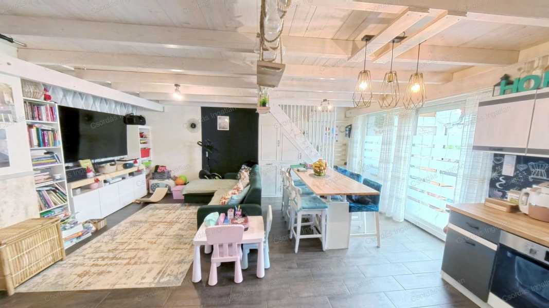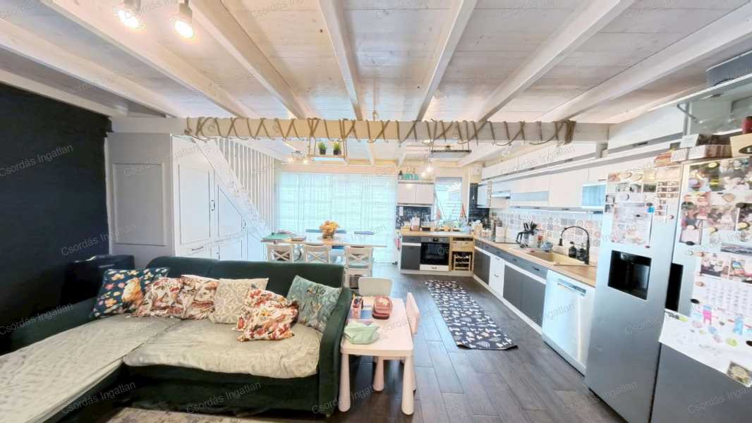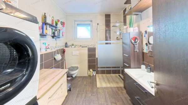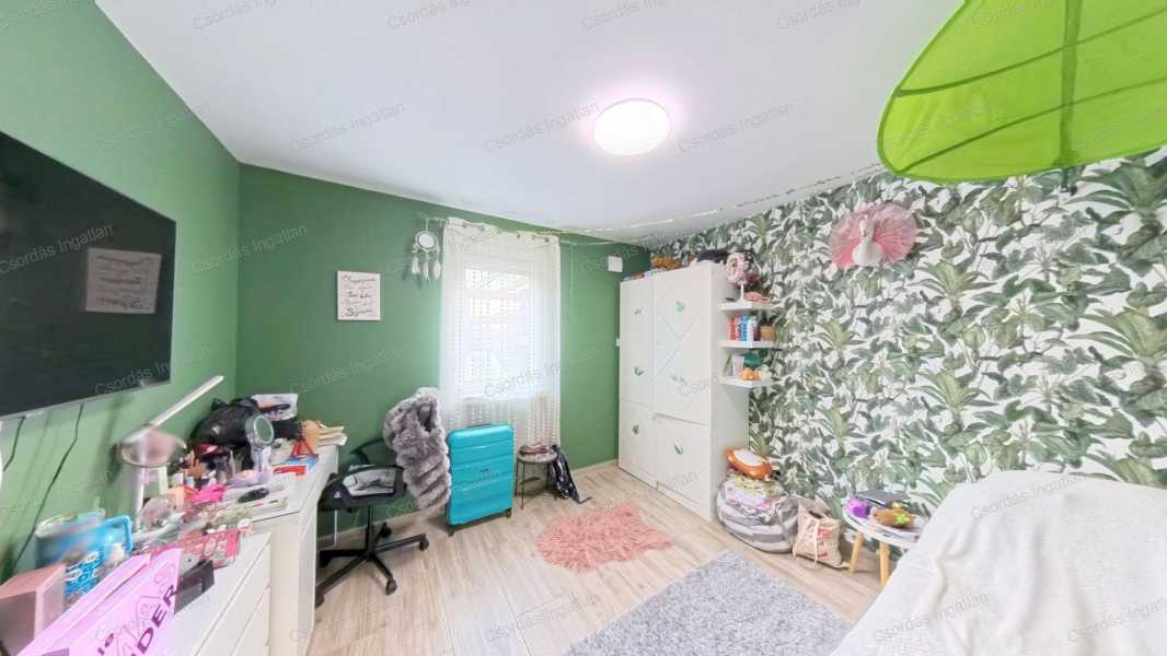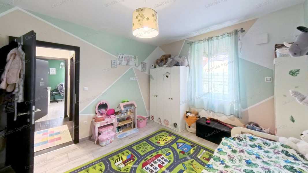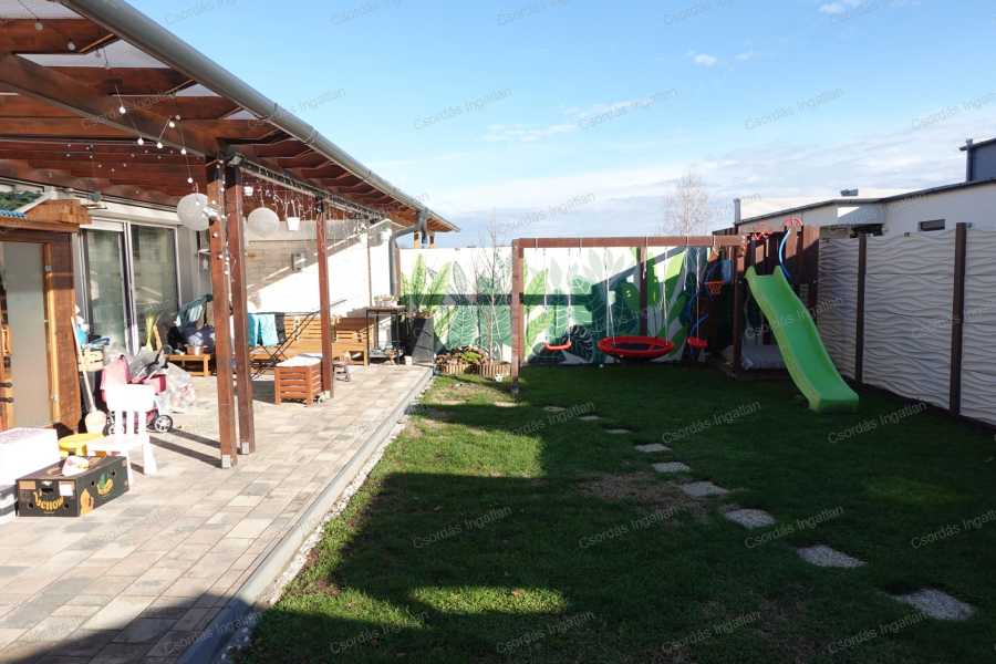 3+1 szobás, 6 éve épült, IGÉNYESEN KIVITELEZETT családi ház eladó Gyulafirátóton. A folyamatosan tovább újított, modernizált földszintes, lapostetős épületbe belépve egy előtérbe érkezünk, mely egy közlekedőben folytatódik. A közlekedőből nyílik jobbra a háztartási helyiség, melyben a villanybojler, az ELEKTROMOS KAZÁN, A GÁZKAZÁN ÉS A VÍZLÁGYÍTÓ kapott helyet. Mellette a WC-kézmosó van. A bejárattól balra az egyik hálószoba található. A közlekedő végéből egy ajtón keresztül jutunk a VALÓBAN TÁGAS, RENDKÍVÜL VILÁGOS NAPPALIBA, mely egy légtérben van a konyha-étkezővel. A konyhába PRÉMIUM MINŐSÉGŰ, EGYEDI KONYHABÚTORT építettek be, amely a mai kornak megfelelő összes szükséges gépet is tartalmazza. Az étkezőből nagy méretű tolóajtón keresztül léphetünk ki a közel 40 m2-es FEDETT, KIVÁLÓ MINŐSÉGBEN BURKOLT TERASZRA. A terasz folytatásaként a körben zárt, belátásmentes 180 m2-es, füvesített kertben pihenhet az egész család. A nappali sarkában vezet fel a lépcső a 31 m2-es galériára, ahol a belmagasság 156 cm. A galéria kiváló teret biztosít a gyerekeknek játszótérként, illetve gyerek hálóként. A nappali bejárat felőli részéből egy kis közlekedőn keresztül nyílik a másik két szoba, valamint a valóban TÁGAS, ZUHANYZÓS, MODERN FÜRDŐSZOBA. A ház fűtéséről PADLÓFŰTÉS gondoskodik, mely elektromos kazánról és gázkazánról egyaránt működtethető. A ház tetején ÉVES ELSZÁMOLÁSÚ, 5 KW-OS NAPELEM RENDSZER van, melynek köszönhetően a villanyszámla az öt tagú családnak közel 0 FT! A nappaliban és a szobákban HŐVISSZANYERŐS SZELLŐZTETŐ BERENDEZÉS van beépítve, melynek köszönhetően mindig tiszta friss levegő van a házban. A nappaliban egy HŰTŐ-FŰTŐ KLÍMA teszi komfortosabbá a házat. A házhoz tartozik egy FEDETT, TÉRKŐVEL BURKOLT DUPLA KOCSIBEÁLLÓ. A vásárláshoz ILLETÉKMENTESSÉG, CSOK PLUSZ, OTTHON START támogatott hitel igényelhető. NÉZZE MEG az ingatlanról készült VIRTUÁLIS SÉTÁT is, „sétáljon végig” saroktól sarokig ebben a kitűnő elosztású lakásban! https://my.matterport.com/models/4GcKS9jvcDF A virtuális séta bal alsó sarkában kis ikonokkal tetszés szerint választhat a séta, a kétdimenziós alaprajz, a háromdimenziós alaprajz, a bútorozott és a bútor nélküli verzió, valamint a méretezés között. HIBÁTLAN VÁLASZTÁS A JÓ VÉTELHEZ! Ne hagyja ki ezt a lehetőséget! HÍVJON, és nézze meg személyesen is ezt a sok lehetőséget kínáló ingatlant! Bankfüggetlen INGYENES hitelügyintézés, INGYENES CSOK PLUSZ, OTTHON START HITEL ÜGYINTÉZÉS. Ön csak kitalálja, mire keres megoldást és nyugodtan hátra dőlhet, a többit elintézzük.