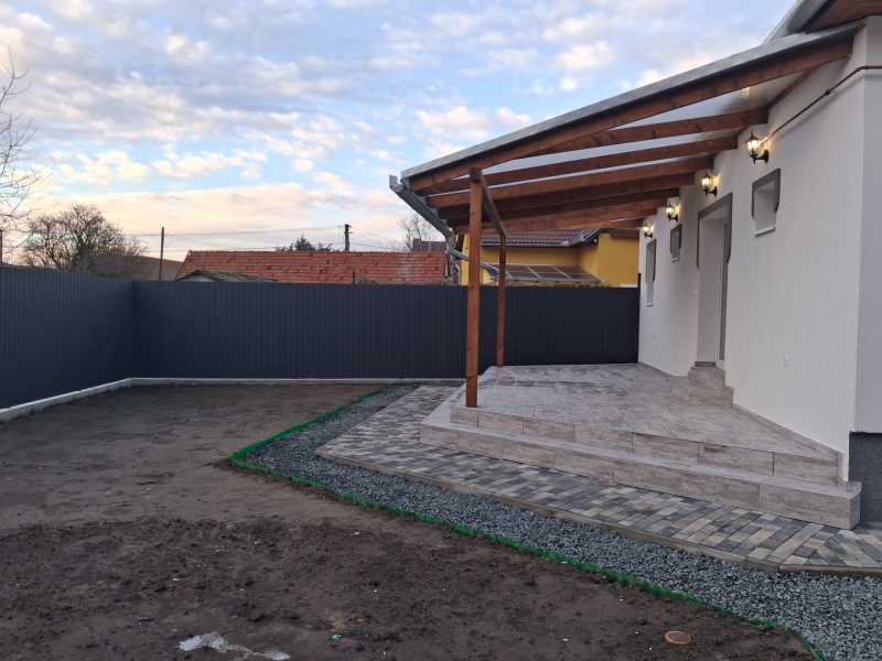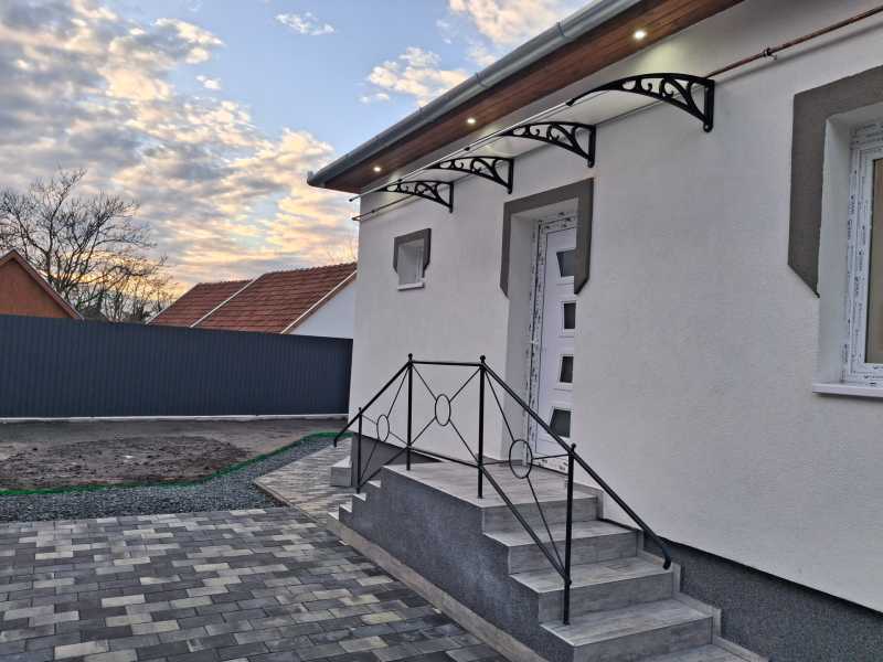 Békéscsabán, Jaminában, eladó egy 105 nm-es, felújított, téglafalazatú családi ház, újszerű állapotban. Azonnal költözhető. Irányár: 49,5 MFt Tel: +36205020207 Béksécsaba kedvelt kertvárosi részén, Jaminában található a 2025-ben felújított kockaház, mely 321 nm-es telken helyezkedik el. A téglafalazatú családi ház kívül belül megújult, és teljes korszerűsítésen esett át. A falakat újra vakolták, kívül hőszigeteltéssel és nemesvakolattal látták el. A mai trend szerinti kerítés és térkövezés, teraszburkolás és teraszfedés valósult meg. A belső felúíjtás is mindent érintett. A külső-belső nyílászárók vadonatújak, a villany-, vízvezetékekeket, és a szennyvízcsöveket is kicserélték. A szobákba laminált padlót, a többi helyiségbe járólapot fektettek. A fürdőszobában, és a WC-ben újak és modernek a szaniterek. A fűtésrendszert korszerű kondenzációs kazánnal és lapradiátorokkal szerelték fel. Az épület Dél-nyugati oldalán egy 26 nm-es fedett terasz húzódik a lakás teljes szélességében, ami egy kétszárnyas üvegezett ajtón közelíthető meg. Az udvar barátságos méretű, a kertszomszédok felől új lemezkerítés határolja. A zavartalan kikapcsolódást elősegíti, hogy ez nem enged rálátást a pihenőkertre. Az udvar viszonylag kicsi, de ápolt, esztétikus. A térkő és a zöld felületek összhangban állva ölelik körül a tágas teraszt. A terasz fedés is korszerű, a fa szerkezetet praktikusan egészíti ki a polikarbonát, ezáltal úgy tölti be a funkcióját, hogy közben nem árnyékolja le a házat. Három külön bejáratú szoba (18, 18, 9 nm) szolgálja a lakók kényelmét, valamint egy 38 nm-es amerikai konyhás nappali. A fürdőszobában és a mellékhelyiségben a gyönyörű burkolás, a szaniterek, bútorok jól átgondolt belső elrendezésével párosul. Külön háztartási helyiségben alakították ki a helyet a mosó és szárítógépnek. Nem kell ezeknek a fürdőszobában vagy a konyhában helyet szorítani, és a működésükkel járó zaj sem zavaró így. Az előszoba és a közlekedő részben szeparált, de egy légtérben helyezkedik el, az amerikai konyhás nappalival. A bolt egészen közel van, és a buszmegálló sincs túl messze, kb. 800 méter. Az óvoda és az iskola 1,5 km-ben belül helyezkedik el. A posta és az orvosi rendelő kb. 2 km-re van tőle. Aki szeret horgászni, annak jó hír, hogy szűk 1 km-re több nagy horgásztó található (Csaba-, Fás-, Kacsás-tó). Ez a természet és víz közeli környezet sok más kikapcsolódási formára nyújt még lehetőséget, pl. nordic walking, futás, lovaglás. Aki szeretne a megyeszékhelyen, de annak egy nyugodt, csendes, részén élni, annak ez lehet a tökéletes otthon! Aki el sem tudja képzelni, hogy egy felújítással bajlódjon, annak ez egy megvalósult álom! Ide azonnal be lehet költözni, még csak festeni sem kell! Tekintse meg!