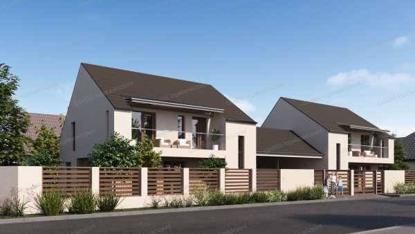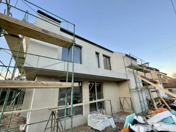 Veresegyház központi részén, nagyon jó környéken, modern kétszintes kivitelezésben épülő, közel 0 energiaigényű, nappali + 4 szobás ikerházfél eladó! A 141nm-es épület 30-as porotherm dryfix tégla falazattal, 15cm vastag homlokzati szigeteléssel, betoncserép fedéssel, monolit vasbeton, ill. faszerkezetű födémmel épül. Földszinten előszoba, nappali-konyha-étkező, kamra, szülő hálószoba, gardrób, zuhanyzós fürdőszoba és vegy vendégmosdó lesz kialakítva. Emeleten 3 szoba, közlekedő, kádas fürdőszoba és gépészeti helyiség kap majd helyet. Az épület tervezésnél fontos szempont volt a fenntarthatóság, a padlófűtésnek és a hőszivattyúnak köszönhetően 0 rezsivel üzemeltethető, energetikai besorolása A+. Nincs közös falrész, 42,7nm-es fedett kocsibeálló + 5nm-es tároló választja el a másik oldaltól. A napelem előkészítése az ár részét képezi! A hirdetésben szereplő információk és látványtervek tájékoztató jellegűek, pontos műszaki leírást, opciós listát az érdeklődőknek kérésre szívesen küldünk e-mailben! Várható kulcsrakész átadás: 2025. II. félév Irányár: 139,9Mft Hivatkozási szám: 2517889. Megtekinthető telefonos időpont egyeztetés alapján: Pintér Roland +36 20 539-1988 pinterroland@godolloi.hu GÖDÖLLŐ INGATLANKÖZPONT - www.godolloi.hu: Gödöllő és környéke legnagyobb ingatlan választéka /Gödöllő, Szada, Veresegyház, Kistarcsa, Kerepes, Erdőkertes/ eladó-kiadó családi ház, telek, lakás! Ingatlan építés és felújítás!