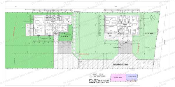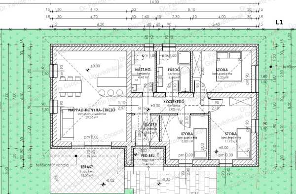 Koroncón lehet az új otthonotok, egy 620 nm-es telken, nappali +3 szobás családi házat építünk számotokra. Fűtéskész átadás a szerződés aláírásától számítva 9 hónap múlva. Ne késlekedjetek, hívjatok, foglaljátok le ezt a remek ajánlatot! 3% os hitel az egész ingatlan értékre igénybe vehető! L1 (első, utcafronti ház) 81,78 nm lakótér + 15,42 nm terasz, bruttó 96,78 nm, lásd a képek között. JANUÁRI kedvezményes ár: 2026.01.31-ig 3.000.000 Ft kedvezménnyel + ajándék 2 db murvázott beállóval: bruttó 62.999.000 Ft helyett bruttó 59.999.000 Ft + telek 9 M Ft. Egy 1805 nm-es telken 2 db ÖNÁLLÓ ház épül fel, használati megosztással. A bejáró mindössze a közös rész, ami 125 nm. lásd a képek között! Műszaki szemmel, fontos infók, a fűtéskész állapot műszaki leírása: Épületgépészet: A fűtés rendszer padló fűtési rendszerrel kerül kiépítésre Klíma előkészítés Földmunka: Tereprendezés(szemét elszállítása az építkezés után), humusz réteg letolása, kitűzés, gépi alapárok kiemelés 45 cm-es szélességben 90 cm mélységben, kézi után igazítással. Alapozás: Teherhordó falak alatt 85 cm mély 45 cm széles beton sávalap C12-32kk mixerbetonból. Lábazati fal: Két sor LEIER zsalukő. Feltöltés: 10cm Kavicsfeltöltés döngölőgéppel tömörítve. Gépészeti alapszerelés: Csatorna alapszerelés 110 és 50 mm-es PVC csövekkel, felállásokkal. Vízbevezetés KPE csővel szerelve, a kazán alatt leendő vízosztóhoz felállva. Szerelőbeton: 12 cm vastag 15*15*5.2 hálóval vasalt szerelőbeton C12-32kk mixerbetonból a statikai tervek szerint. Falazatok: A fő és válaszfalak alatt bitumenes vastaglemez szigetelés. Külső falak: 30 N+F téglából A belső válaszfalak 10 N+F téglából. Födém teherhordó szerk.: Térelhatároló szerkezet( felső burkolás nélkül), alulról favázon 1rtg RB gipszkartonnal burkolva, párazáró fóliával. Padlásfeljáró helyének kialakítása létra nélkül. Koszorú: Zsaluzva hőszigeteléssel. Beton, C16-16kk mixerbeton vibrátorral tömörítve. Vasalás, 10-es fővasalással, 40 cm-enként, 6-os kengyelekkel. Talpszelemencsavarok elhelyezve. Födém hőszigetelés: 30 cm vastag szálas hőszigetelés. Kémény, Szellőzés: Saunier Duval Semiatek Condens kazánhoz, gyári szerelt dupla falú kémény. Tetőszerkezet: Fa födém Hagyományos tetőszerkezet 15*15 -ös talpszelemennel, 10*15 -ös szarufákkal, szükség szerint 5*15-ös fogópárral és 7,5*15-ös székszelemennel, 3*5 -ös Bramac ellenléc és tetőléccel, tetőfóliával. Bádogozás: Félkör keresztmetszetű színezett ereszcsatorna. Vápa horganyzott lemez. Tetőfedés: Bramac Natura, Mediterrán standard barna vagy szürke cserép. Belső vakolás: Gépi alap- és simítóvakolattal, pozitív sarkokon élvédő elhelyezéssel. Különböző anyagok találkozásánál rabic háló bedolgozással. Külső homlokzat képzés: Oldalfal:15 cm-es dryvit rendszer hálózva színvakolattal(1-es színkategória) Lábazat: 7 cm-es expert hőszigetelés színes lábazati vakolattal . Párkány: Dobozolt kialakítás. Aljzat: 1 réteg bitumenes vastaglemez talajnedvesség elleni szigetelés, 10 cm Austrotherm AT-N100 lépésálló hőszigetelés, 1 réteg technológiai szigetelés, 6 cm aljzatbeton. Külső nyílászárók: Fehér, műanyag rendszerű hőszigetelt üvegezésű ablakok (k=0,6 az üvegre), a téglafalba építve purhabbal, biztonsági bejárati ajtóval. Villanyszerelés: Szobák, nappali-konyha-étkező: 1db világítótest, 5db tetszőlegesen választható kapcsoló vagy dugalj. Közlekedő, WC, fürdő, kamra, háztartási helyiség 1db világítótest 3 db dugalj vagy kapcsoló. Kültéren:1db világítótest, és 2db kapcsoló vagy dugalj kialakítása. A darabszám helyiségenként értendő. Terasz / közlekedők / gépkocsibeálló Murvázott terasz a rajzott jelzett 15 m2-en. Gépkocsibeálló + hozzá vezető közös út és behajtó murvázva Térköves beálló és terasz felár ellenében kérhető Megjegyzés: Ezen műszaki tartalom szerves részét képezi az árajánlatnak. Ettől való bármilyen eltérés lehetséges, de árváltozást eredményezhet. Változtatási szándékát kérjük, szerződéskötés előtt feltétlenül jelezze! Fontos: A külső közművek (víz, villany, szennyvíz, csapadékvíz elvezetés) biztosítása az épületen kívül, az épületen belüli csatlakozási pontig a megrendelő feladata! Ennek költsége kb. bruttó 2.500.000 Ft, ami külön fizetendő! Várom hívásod!