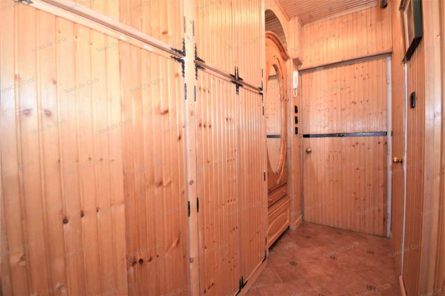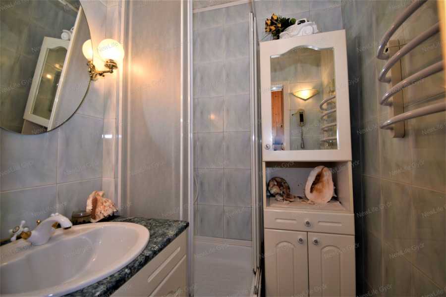 Győr-Moson-Sopron vármegye, Győr-Adyváros, felújított panellakás eladó Győrben, az Ifjúságkörúton, Plázához közel eladó ez a 4. emeleti, 53 m2-es, két nagy szoba hallos, felújított panellakás. Győriek tudják, itt autóba sem kell szállni, ha bevásárolni, ügyeket intézni kellene. Kórház, Pláza, több iskola, óvoda is séta távolságra elérhető. A négyemeletes társasház panelprogramon átesett, ablakai parkra és gyönyörű magas platánfákra néznek. A tulajdonos igényessége az ajtón belépve egyből szembetűnik, igazán egyedit alkotott. A nappaliban és a hálószobában puha amerikai szőnyegpadló, a falburkolatok, falkárpit, a hálószobában gyönyörű tapéta díszíti a lakást. A hallt intarziás parketta, fűtő funkcióval rendelkező kandalló teszi rendkívül otthonossá. A hálószobában gyönyörű, borovifenyő-frontos szekrény díszeleg hatalmas rakodófelülettel, rejtett tévével, mely házimozi rendszerrel összekapcsolt, illetve itt is megtalálható egy kandalló, mely szintén fűt is, ha szükséges lenne. Az egész lakásban álmennyezet fut, mely szigetelő funkciót is ellát, illetve a stílushoz illő függönyök, sötétítők, lámpák, falikarok teszik teljessé a képet. A lakást lehetőség szerint a tulajdonos a bútorokkal együtt adná el, az árban csak részben vannak benne a bútorok. A felújítás során a burkolatok mellett a vízvezetéket is cserélték. Villanyvezeték '95-ben lett felújítva, viszont felülvizsgálatot igényel. Kivételt képez a konyhabútor, amely a következő tulajdonos elképzelése szerint készülhet, de igény esetén a jelenlegi tulajdonos vállalja a befejezést felár mellett. (Jelenleg nincs benne bútor) Elosztását tekintve: nappali hall, hálószoba, konyha, zuhanyzós fürdőszoba, külön WC. Nyílászárói több rétegű hő- és hangszigetelt műanyag, redőny a szigeteléskor leszerelésre került, azonban bármikor visszatehető. Beltéri ajtók közül kiemelendő a hálószobának az ajtaja, ami igazán különleges, egyedi, rendkívül jól illik az egész lakás hangulatához. A lakás fűtése távhővel megoldott, egyedi mérős lapradiátorokon keresztül kellemes hőfokot tud tartani alacsony költségen. Az előszobában az egyik oldalt teljesen beépített, fa frontos ajtókkal, ami mindent elnyel. Bejárati ajtó szintén megkapta a harmonizáló fa burkolatot belülről. A lakásban egyedi olasz nemes bútorok megegyezés tárgyát képezik, akár a szekrénysor, az újszerű állapotú bőr ülőgarnitúra, a valódi mahagóni fából készült íróasztal az ülőgarnitúrához egyedileg gyártatott bőrfotellel. Elhelyezkedése miatt pillanatok alatt kiadható. Tehermentes, azonnal költözhető. A lakáshoz vásárolható egy 18 m2-es fűtött garázs, villannyal, újszerű állapotban. A garázs ára 10 MFt, kifejezetten a lakással eladó, de megvásárlása nem kötelező, külön HRSZ-on vannak. A jelen hirdetésben rögzített, az ingatlannal kapcsolatos adatok, információk a megbízó tájékoztatása alapján kerültek meghatározásra. Irodánkban az alábbiakkal tudjuk segíteni a gyors és megbízható ügyintézést: -bankfüggetlen hitelügyintézés -energetikai tanúsítvány -értékbecslés -ügyvédi szerződések, jogi tanácsadás