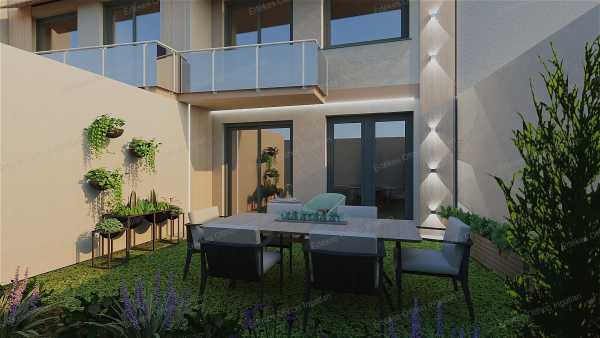 Ha fontos számodra a modern design, az energiatakarékos technológia és a nyugalom, miközben pár percre maradnál a város szívétől – ezt az otthont érdemes megnézned! Megbízható számos referenciával rendelkező kivitelezőtől! Főbb jellemzők: Új építésű, két szintes tégla ikerház Dupla fallal elválasztva a maximális hangszigetelésért 103 nm alapterület + 15,9 nm garázs + 50 nm saját pihenőkert Modern, elegáns megjelenés – a belső terek még személyre szabhatók! Elosztás: Földszint: Előszoba, közlekedő Vendég WC kézmosóval Amerikai konyhás nappali-étkező ~35 nm Közvetlen teraszkapcsolat a kertbe Emelet: Szoba: 10,38 nm Szoba: 10,48 nm + 3,66 nm erkély Fürdőszoba káddal 3,94 nm Gardróbszoba: 5,09 nm Háztartási helyiség 5,15 nm Szülői háló saját fürdővel (zuhanyzó + WC) – 11,55 nm + 3,90 nm Műszaki tartalom: 3 rétegű, nagyméretű ablakok 10 cm grafitos szigetelés Hőszivattyús fűtés, napelem rendszer Rejtett ereszcsatorna, modern homlokzati megoldások A+ energetikai besorolás Burkolatok, szaniterek, belső nyílászárók választhatók – a vételár részeként! Várható kulcsrakész átadás: 2026. június 30.