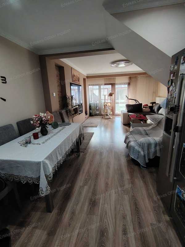 Egy igen kitűnő lehetőséget kínálok. A sorház szélső lakása válik eladóvá. A ház előtt kis virágos előkert, s udvar és garázs is tartozik hozzá. A lakás földszinti részén előszoba, wc, nappali -étkező, külön konyha, s tágas terasz található. A terasz beüvegezett, ablakokkal nyitható. Csodás fényözön áramlik be a nappaliba is ezáltal. Az emeleti részén két hálószoba, előtér van. A tetőtérben pedig egy újabb hálószoba található. Amit az ingatlanról tudni kell: egyedi gázcirkó fűtéssel rendelkezik. A lakásban minden fala gipszkartonozott, a szomszédos egyetlen fal dupla hangszigeteléssel van ellátva. A lakásban minden vezeték ki van cserélve. A jelenlegi fűtésköltsége nem haladja meg a havi 8000.-Ft-ot, olyan masszív szigetelést kapott a ház. Az összes nyílászáró ki van cserélve, acél bejárati ajtóra, illetve 3 rétegű ablakokra. Minőségi felújítás történt a lakásban. 3 klíma található a házban, ezek hűtő-, fűtőklímák. A földszint alapnégyzetmétere: 42 nm, emeli:42 nm, tetőtéri:9 nm. Ez 93 nm összesen, jelenleg a tetőtéri szoba nincs használva, azonban a tetőszerkezet alatt is gyapotszigetelés van, a lakás mindenütt fűtött. Az udvaron fúrott kút található. A garázs kb 18 nm, amelybe a házat megkerülendően lehet beállni, hátsó bejárattal, így az udvar teljes része pihenőkertnek van kialakítva. Az ingatlan üzlet, az otthon érték. Keressen bizalommal: Teljeskörű ügyintézésben segítünk, ügyvéd, hitelügyintéző egyaránt.