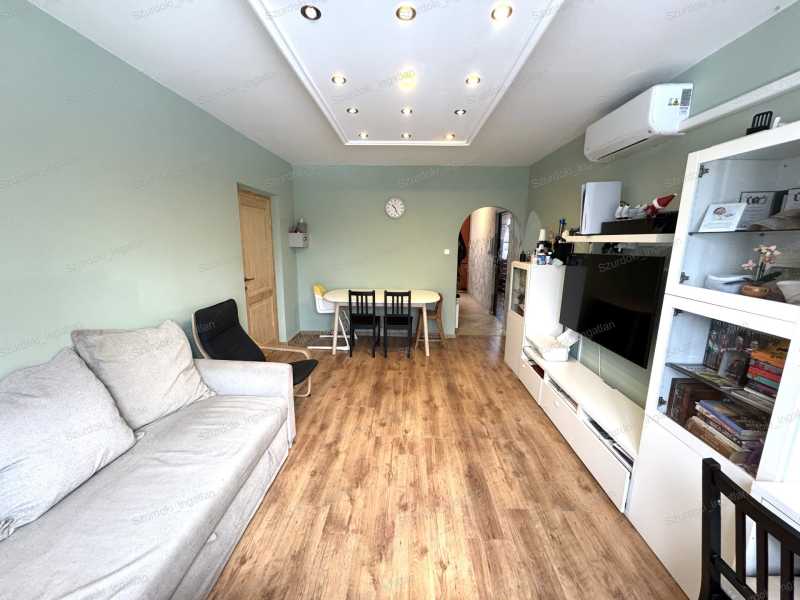 Szegeden, a Hont Ferenc utcában kínálunk ELADÁSRA egy 1986-ben épült X. emeletes, 30 lakásos társasház I. emeletén található, 61 m²-es, jó állapotú, 2 + 1 fél szobás panellakást, zöldövezeti kilátással, napfényes tájolással, és kiváló elhelyezkedéssel. Általános információk A lakásba belépve egy L-alakú közlekedőbe érkezünk, ahonnan minden helyiség kényelmesen megközelíthető. Jobbra helyezkedik el a konyha, a fürdőszoba, valamint a külön nyíló illemhelyiség. Bal kéz felől a nappali található, míg szemben az egyik hálószoba kapott helyet. A nappaliból és a hálószobából egyaránt megközelíthető a félszoba, melyből egy zöldövezetre néző loggia nyílik. Az ingatlan dupla üvegezéssel ellátott műanyag nyílászárókkal rendelkezik, amelyek szúnyoghálóval és árnyékolókkal egyaránt felszereltek. 2021-ben az ingatlan egy nagyobb hangvételű felújításon esett át, mely magába foglalta a fürdőszoba és az illemhelyiség teljeskörű felújítását, a hálószobák melegburkolását, a beltéri ajtók cseréjét (kivéve a fürdőszoba és wc) és a teljes lakás tisztasági festését. Ekkor a loggiát és a félszobát elválasztó falazati rész és a nyílászárók is cserélve lettek. 2024-ben az elektromos hálózat korszerűsítése is megtörtént. A nagyobb fogyasztókhoz új vezetékek kerültek beépítésre, a kötéseket és biztosítékokat cserélték, továbbá a Fi relé is beszerelésre került. A nappali új, Midea típusú hűtő-fűtő klímaberendezést kapott, amely egész évben biztosítja a kellemes hőérzetet otthonunkban. 2024 végén a konyhabútor részleges felújításon esett át, jelenleg beépített villanytűzhellyel és főzőlappal felszerelt. Az ingatlan két darab vízórával rendelkezik, amelyek cseréje 2023-ban történt meg. A fűtés távfűtés, egyedi méréssel. A közös költség 15.000 Ft, amely magában foglalja a takarítást, a biztosítást, a szemétszállítást és az általános fenntartási költségeket. A lakáshoz egy 12 m²-es, közös, zárható tároló is tartozik, amely praktikus tárolási lehetőséget biztosít. Műszaki adatok Építés éve: 1986 Épület szintjei: X. Emelet: I. Lakások száma: 30 Fűtés: Távfűtés egyedi méréssel Tájolás: Kelet-Nyugat Nyílászárók: Műanyag, kétrétegű ablakok, szúnyoghálóval és árnyékolókkal Tároló: Közös, zárható tároló (12 m²) Közös költség: 15.000.- Ft Környék A lakás elhelyezkedése ideális: csendes, zöldövezeti környezet, mégis közel mindenhez. Néhány perc sétával elérhető több üzlet és szolgáltatás, például Lidl, Aldi, Penny Market, piac, drogéria, gyógyszertár, fodrászat, éttermek, pékség és kávézók. A közeli Vértó tökéletes lehetőséget nyújt kikapcsolódásra, sportolásra, sétára vagy akár piknikezésre is. Közlekedés Tömegközlekedés szempontjából is kiváló helyen fekszik az ingatlan. Mindössze egy perc sétára található a troli megálló (5-ös, 6-os, 8-as és 19-es vonalak), valamint a buszjáratok (84-es, 90-es, 90F-es, 90H-s) és a 2-es villamos is könnyen elérhető. Az autóval közlekedők számára ingyenes parkolási lehetőség biztosított közvetlenül az épület közelében. Kinek ajánljuk? Ez az ingatlan tökéletes választás családoknak, fiatal pároknak vagy befektetőknek, akik egy kiváló elhelyezkedéssel rendelkező élhető lakást keresnek. Az emeleti elhelyezkedésnek és az ingatlan akadálymentesítettségének köszönhetően akár az idősebb korosztály számára is megfelelő választás lehet. Az ingatlan 3 hónapon belül birtokba vehető. Az ingatlan látványtervekkel egészült ki. Amennyiben kérdése van, vagy szeretné megtekinteni az ingatlant, keressen bizalommal!