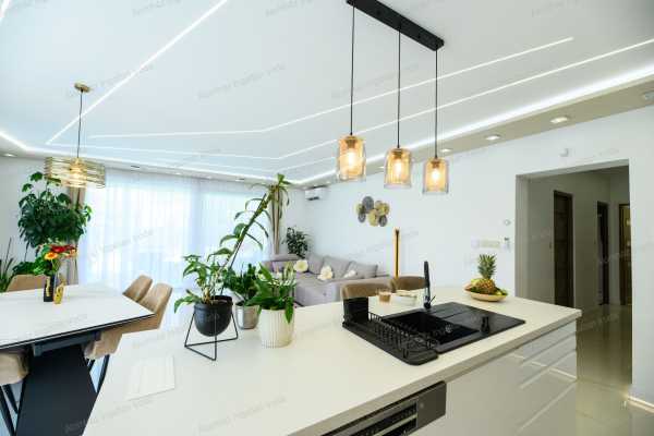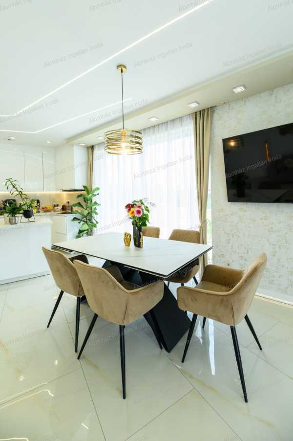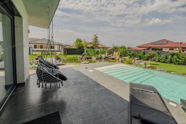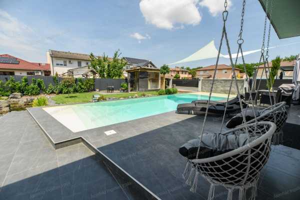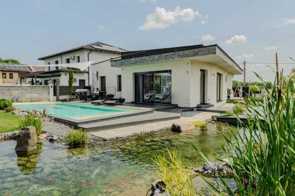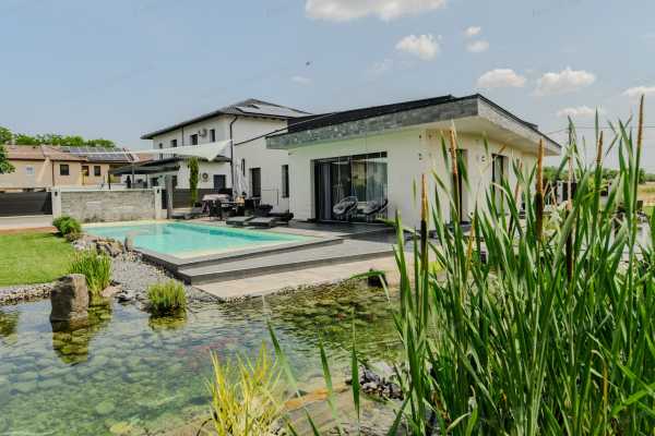 Luxus, nyugalom és energiafüggetlenség – különleges családi ház eladó Dunaharasztin Eladó egy egyedülálló kialakítású, újszerű, 135 m²-es luxus családi ház Dunaharaszti egyik legkedveltebb részén, a Millenniumi lakóparkban, 1023 m²-es, parkosított telken. Ez az ingatlan nem típusház: gondos tulajdonosi kivitelezéssel, hosszú távú fenntarthatóságra és maximális komfortérzetre tervezve készült. Ideális választás azok számára, akik csendet, minőséget és modern technológiát keresnek kompromisszumok nélkül. Főbb jellemzők 1 éves épület, 15 cm homlokzati szigeteléssel 3 rétegű nyílászárók, elektromos alumínium redőnyökkel Hőszivattyús padló- és mennyezeti fűtés–hűtés 19,5 kW-os napelemes rendszer (H tarifa) – gyakorlatilag nulla rezsi Hővisszanyerős szellőztetés Riasztórendszer + 16 kamerás biztonsági rendszer Belső terek 5 szoba, modern, jól átgondolt elrendezés Teljesen felszerelt konyha, minőségi beépített bútorokkal 2 fürdőszoba (sarokkád + zuhany), 2 WC Prémium burkolatok, letisztult dizájn Kültéri extrák – valódi wellness élmény 15×4 m-es, LED-es medence vízeséssel 8 fős finn szauna 30 m-es öntisztuló kerti tó, saját ökoszisztémával Elektromos kapuk, térkövezett beállók Hangulatos dizájn kerti világítás Paraméterek röviden Település: 2330 Dunaharaszti Ingatlan típusa: Családi ház Alapterület: 135 m² Telek: 1023 m² Szobák száma: 5 Építés éve: 2025 Állapot: Újszerű Energetika: A+++ (nulla fűtési fogyasztás) Költözhető: azonnal Tehermentes ✨ Ez az otthon nemcsak lakóhely, hanem életminőség-váltás. Ha olyan ingatlant keres, ahol a modern technológia, a természet és a luxus tökéletes harmóniában találkozik, ezt mindenképp látnia kell.