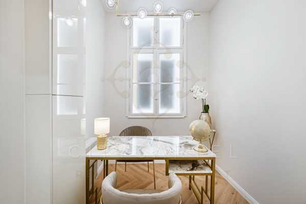 C I T Y C Λ R T E L INTERNATIONAL LUXURY REAL ESTATE AGENCY bemutatja: Belső-Terézváros egyik csendes, nyugodt egyirányú utcájában, elegáns, zöld belső udvaros házban kínáljuk ezt kivételes adottságokkal rendelkező, kompromisszummentesen felújított luxuslakást. Az üveg lifttel ellátott, kifogástalan állapotú társasház 1. emeletén található ez a tulajdoni lapon 83 nm-es, a valóságban 86 nm-es, amerikai konyhás nappali + 3 hálószobás, továbbá külön dolgozószobával és háztartási helyiséggelrendelkező, duplakomfortos ingatlan. A lakás elrendezése tökéletesen kiszolgálja a modern városi életformát: a fő fürdőszobában kád és walk-in zuhanyzó is helyet kapott, míg az egyik hálószoba saját, külön zuhanyzós fürdőrésszel rendelkezik – ideális vendégek vagy rövid távú bérbeadás esetén is. A tágas belső terek, a délkeleti tájolás és a nagy üvegfelületek egész napos természetes fényt biztosítanak, tovább erősítve a lakás nyugodt, harmonikus atmoszféráját. Az ingatlan frissen, teljeskörű műszaki és esztétikai felújításon esett át. A kivitelező sokadik, magas színvonalú munkája egyértelműen visszaköszön a gondosan megtervezett belsőépítészeti koncepcióban, amely a klasszikus nagypolgári eleganciát a modern luxus letisztultságával ötvözi, kizárólag prémium minőségű, exkluzív anyaghasználattal. Műszaki és felszereltségi tartalom – kompromisszumok nélkül: Teljesen megújított víz-, gáz- és elektromos hálózat 3×23A elektromos kapacitás Gáz cirkó fűtés radiátorokkal Padlófűtés a fürdőszobában és a WC-ben 2 db Gree 3,5 kW hőszivattyús klíma, elektromos cirkó kiállással Teljeskörűen felújított nyílászárók: savmart üveg, hőszigetelés, precíz passzítás, polírozott réz kilincsek, felújított zárszerkezetek Bosch beépített konyhai gépek (sütő, mikro, főzőlap, mosogatógép) Gránit mosogató Wellis szaniterek, kád és WC Geberit WC-tartály és nyomólap Legrand prémium kapcsolók egyedi keretekkel DSC riasztórendszer szünetmentes tápegységgel Mennyezetig burkolt fürdők 60×120 cm-es nagylapokkal Egyedi OIKOS olasz strukturált falbetétek, díszfestések Beépített Bluetooth hangszórók az álmennyezetben Okosvezérlés: a teljes lakás hőmérséklete telefonról és érintőpanelről szabályozható a klímarendszer szintén mobiltelefonról vezérelhető A vételár tartalmazza a képeken látható teljes bútorzatot és dekorációt, többek között Rituals illatosítókat, kozmetikumokat, valamint Zara Home kiegészítőket és étkészletet – az ingatlan azonnal használható vagy kiadható. A társasház külső és belső homlokzata kiváló állapotú, a lakóközösség rendezett, igényes. Ajánlom mindazoknak, akik befektetési céllal keresnek azonnal működtethető belvárosi ingatlant, vagy saját otthonukat szeretnék megtalálni Budapest szívében anélkül, hogy időt, energiát és további költségeket fordítanának felújításra. Az ingatlan tehermentes és azonnal birtokba vehető. Ára: 189.000.000 Ft. DR. BOZÓ JÁZON Értékesítési munkatárs Luxury Specialist +36 30 815 2517 b.jazon@citycartel.hu CITY CARTEL BUDA KFT. CITY CARTEL FRANCHISE HUNGARY KFT. 1118 Budapest, Hegyalja út 54.