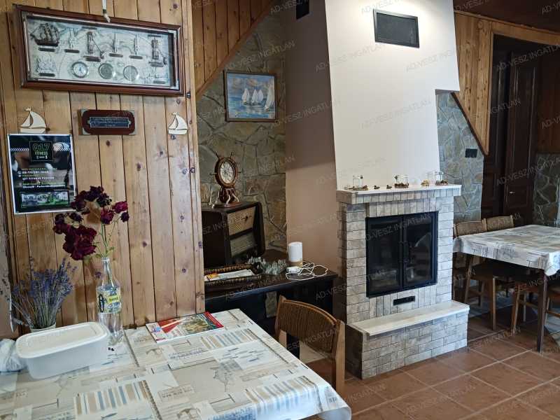 BIZTOS BEVÉTEL, BIZTOS BEFEKTETÉS Fonyódon. Balaton mellett eladóvá vált egy villában kialakított szálló + 8 db faházzal, 2884nm-es telken. 30 éve gazdaságosan működő, kialakult vendégkörrel rendelkező biztos befektetést kínálunk. Fonyód hegyoldalában fekszik a 333nm-es szép villa, csodás panorámával Badacsonyra. A földszinten egy üzemi konyha található, bár, és étterem. Az étteremből a teraszra kiülve látjuk a Balatont. Az első emeleten a télikert, vendégszobák, toalettek helyezkednek el. A tetőtér lakásként működik jelenleg. 8 db 30nm-es vendégház két szobával, tusolóval, wc-vel üzemel, plusz egy 64nm-es különállló, körbejárható épület pinceszinttel és földszinttel. Felújítások: héjazat, 2000-ben fa és termoplan nyílászárók, 2010-ben télikert, 2019-ben napkollektor 2021-ben Fűtés földszint: vízteres kandalló radiátorokkal első emelet: vízteres kandalló radiátorokkal, hűtő-fűtő klímával tetőtér: gázközponti fűtés Parkban grillező hely Parkolás -udvarban -egy férőhelyes garázs a hegyoldalban Lokáció: vízparttól 200 m Hitel, ügyvéd, földhivatal, birtokba adásig ügyintézünk. Kondás Gabriella +36 20 564 8590