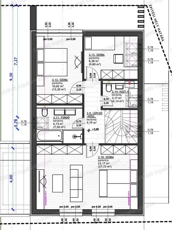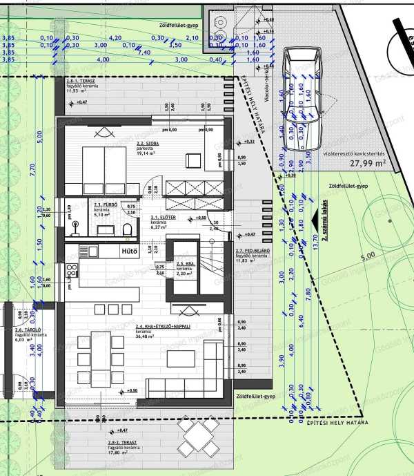 Gödöllő keresett, Egyetemhez közeli részén, kertvárosias környezetben, kiváló elosztású, újépítésű ikerházfél referenciákkal rendelkező, megbízható építőtől eladó! Műszaki paraméterek: - 30-as Porotherm tégla falazat + 10cm grafit szigetelés, - beton cserépfedés, - födémen 20cm vastag kőzetgyapot, - 3 réteg üvegezésű, 5 légkamrás hőszigetelt nyílászárókkal, redőny előkészítéssel, - kondenzációs kazán vagy hőszivattyú (+3Mft), padlófűtéssel, - riasztó előkészítés, - hűtő-fűtő klíma 250.000.-Ft-ig, - bejárati ajtó: 250.000.-Ft, - beltéri ajtók: 70.000.-Ft/db, - kerámia burkolatok 5.500.-Ft/nm, - parketta 4.500.-Ft/nm, - mosdó 20.000.-Ft/db, - WC 30.000.-Ft/db, - csaptelepek 15.000.-Ft/db, - kád 50.000.-Ft, - zuhanyfolyóka 25.000.-Ft, - helyiségenként 1db kiállás + kiállások 25.000.-Ft/db, - helyiségenként 1db kapcsoló + kapcsolók 35.000.-Ft/db. Elosztás: - Földszint: előtér, nappali-konyha-étkező, kamra, szoba, fürdő + 11,53nm terasz és 6,03nm tároló. - Tetőtér: 3 szoba (az egyik kettéosztható), közlekedő, fürdő, háztartási helyiség. Telek: - 380nm-es telken helyezkedik el, parkoláshoz kocsibeálló kerül kialakításra, - kaputól a bejárati ajtóig 1m széles, térkövezett járda, - Kerítés díszkővel, fa vagy acél közökkel. Környék: - Csendes, nyugodt környék óvoda, iskola, bevásárlóközpont a közelben megtalálható. Buszmegálló, vasútállomás gyalog 5 percre van. Az ingatlant megbízható kivitelező építi! Burkolatok, belső ajtók a vevői igényei szerint még szabadon választhatók! Kérésre teljes műszaki tartalmat, alaprajzot szívesen küldünk! Várható kulcsrakész átadás: szerződéskötéstől 6 hónap Irányár: 150.000.000.-Ft Hivatkozási szám: 2518150. Megtekinthető telefonos időpont egyeztetés alapján: Sápi Balázs +36 20 772-2429 sapibalazs@godolloi.hu GÖDÖLLŐ INGATLANKÖZPONT - www.godolloi.hu: Gödöllő és környéke legnagyobb ingatlan választéka /Gödöllő, Szada, Veresegyház, Kistarcsa, Kerepes, Erdőkertes, Fót, Dunakeszi/ eladó-kiadó családi ház, telek, lakás! Ingatlan építés és felújítás!