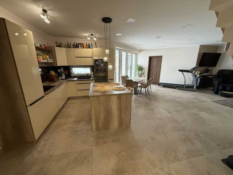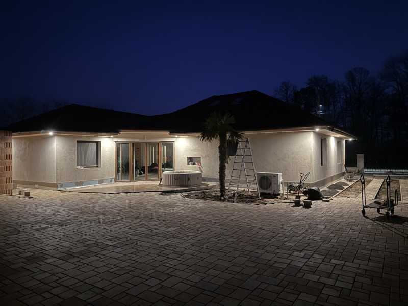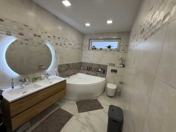 ***VADONATÚJ ÉPÍTÉS*** Megvételre kínáljuk Kaposvár, Toponár csendes, kertvárosi részén 2025-ben épített (teljes befejezés 2026.) 200m2 nettó alapterületű 3 külön hálószobás 2 szintes családi házat. Ház Az ingatlan Porotherm X-therm téglából épült, 15 cm grafitos hőszigetelést kapott. Tető fedése Terrán barna beton cserép. Mind a födém, mind pedig a tetősík (szarufa közök) kaptak 15-15cm kőzetgyapot szigetelést a hatékony energetikai tulajdonságok elérése miatt. A ház nappalija 60 m2, mely meglehetősen komfortos érzetet és élhető teret biztosít a mindennapokban. 3,5*2,4m méretű eltolható ajtó nyílású teraszabkal a hátsó kert felé néz. Fűtés rendszer és melegvíz ellátás Gree 16kw hőszivattyúval megoldott. 11 körös padló hűtés-fűtés van kialakítva a jó komfortérzetért. A házban megtalálható 1 db fürdő, zuhanyzó, WC, 1 db fürdő, WC, illetve egy vendég WC is. A beépített konyhabútor egyedileg gyártatott minőségi, üvegezett előlapos, soft close-s rendszerrel megépített konyhaszigettel ellátott, Whirpool beépített gépekkel szerelt. Előszobában levő, színvilágában megegyező üvegezett és tükörrel szerelt ajtós gardrób szekrény szinten egyedileg készíttetett 4,0 m*2,4m méretű hatalmas tárolási kapacitással rendelkező bútor, mely a vételár részét képezi. Szaniterek főként WELLIS prémium termékek. Burkolatok első osztályú minőségű hidegburkolatok, melyek lerakásához Baumit prémium alapozókat, ragasztókat használtunk. Házhoz tartozik egy garázs is, mely ugyancsak padlófűtéssel ellátott. Az emelet mindösszesen 50m2, mely jelenleg egy légtérré lett alakítva. Igény esetén 2 hálószoba egyszerően és költséghatékonyan kialakítható. Padlózata szigetelt, 5 db Roto, rolós tetőtéri ablak került beépítésre. Az oda felvezető lépcső ún. gipszbeton lépcső. Burkolata bükkfából készült, asztalos által egyedileg gyárott, lépcsőlapba ledes világítás került beszerelésre. A lépcső korlátjának üvege hamarosan elkészül. Nyílászárók Rehau márkájúak, fokozottan hőszigeteltek. Ablakokra, teraszajtóra távirányítható, elektromos rendőnyök kerültek felszerelésre. 3 állásos garázs: A ház mellé folyamatban van egy 3 állásos tégla garázs építése, jelenleg a betonkoszorúig van kész. Tető, vakolat, szigetelés, színezés tavasszal folytatódik. Építőanyagok java meg van vásárolva (vételár része ennek a befejezése) 3 fázisú áram van kivezetve, elektromos autó töltő, tetőre szerelt napelemhez való kiállásokkal. Fűtést elektromos kazánnal, radiátorral terveztük megoldani. Még módosítható. - Vételár nem tartalmazza, külön megegyezés esetén cégünk befejezi. Utcafronti kerítés 20cm betonból készült, szilikonos kapart vakolattal színezett. 2 db elektromos dupla szárnyú kapu került kiépítére. Egyik (350cm) a garázsba vezető részen, a másik (400cm) hátra a telekre vezető részen került kiépítésre. Kiskapu mágneszárral ellátott. Mobil alkalmazással bárhonnan nyitható. Kert: 2 090 m2 telken fekszik az ingatlan. A házhoz tartozó mintegy 300m2 térkövezett rész mögött terveztük a hátsó kertet kialakítani, mintegy 1200- 1300m2-en. Kiásásra került egy ~ 150m3-es fürdőtó alapja. Ezen tő csövezése, gépépszeti aknájának kivitelezése megtörtént. Néhány mediterrán növény is kiültetésre került a tó partján. Gépészet kiépítése, betonozás, vasalás, beige vagy fehér színű műgyantás burkolat képzés, ezekhez tartozó műveletek elvégzése még hátra van. Tervezve van a tóban egy jacuzzy rész, illetve egy vízeséssel szerelt kisebb (~ 2,5m átmérőjű) "barlang". Tervek szerint fűtött lesz a tó, a csövezések aszerint kerültek kiépítésre. - Ezen munkák befejezését külön megegyezés alapján elvégzi cégünk. Öntözőrendszer kiépítés, kertépítés- Külön megegyezés szerint elvégezzük. Oldalhatáron levő kerítés a szomszéd feladata, de ő nem kíván pénzt költeni rá. Vételár nem tartalmazza, igény szerint cégünk azt is megépíti. Nem a vételár része. Közel 5 millió Ft értékben került elültetésre mediterrán növény, mely ugyancsak a vételár részét képezi. Amely munka még visszavan és a vételár részét képezi a fentieken túl: Az építkezést 2025 márciusában kezdtük, így nem tudtunk eljutni az építkezés végéig. Házon a színezés az időjárás miatt nem került elvégzésre, azt tavasszal elvégezzük. Térkő nem lett elegendő, annak befejezése ~60m2 meg fog történni. A dobozolt párkány lazúrozása, festése. Házban levő garázs padló burkolása. Külső ablakpárkányok felszerelése