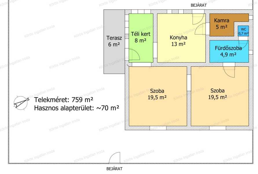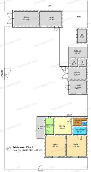 Békésszentandrás jó választás, ha biztonságban szeretnél élni, barátságos szomszédokkal, közel a vízparthoz, sportolási lehetőségekkel. Nagyközségünk létszáma 3300fő, Szarvastól 5km-re helyezkedik el. A kákafoki- holtág öleli körbe, a 44-es főút szeli ketté. Kiemelt tursztikai jelentőséggel bír, a Körös partvonalán számtalan hétvégi ház, üdülő kínál szállás, és üdülési szolgáltatásokat. A vételre kínált Kádár-kocka 10cm-es szigeteléssel ellátott tégla falazatú, cserép héjalású, beton alapra épült családi ház. Hasznos alapterülete ~70nm. Előkertes összkomfortos, összközműves ingatlan, mely 2 utcáról megközelíthető. Szobái 2x20nm-es faparkettával burkoltak, nyílászárói műanyag hőszgetelt üvegezésűek. A konyha-étkező hangulatát, melegét kandalló (is) biztosítja, radiátoros hőleadókkal. A tusolóval felszerelt fürdőszobából nyílik a wc., mindkét helyiség falazata 2m-s magasságig csempézett. A télikert hőszigetelt üvegezéssel kialakított, délre néző elhelyezkedéssel, tágas teret vizonál. A télikert előtt kívül, fedett kiemelt teraszt láthatunk. A ház fűtésére gáz cirkó, vízteres kandalló, és hűtő-fűtő klíma áll rendelkezésre. Az ingatlanban a villanyvezeték teljes körű cseréje, és a H-tarifa bevezetése megtörtént. Kis mérete ellenére benapozott, világos, energiatakarékos, jó elosztású családi ház. A telek mérete 759nm, lábazaton álló kerítéssel, fa lécezéssel, és lemezborítással körbe határolt. A gazdasági épület a hátsó fronton helyezkedik el. Villannyal ellátott, betonozott aljzattal rendelkezik. Igény esetén vendégház, nyári konyha, műhely is kialakítható belőle. Tárolóként funkcionál az első bejárati helyiség, a középső garázsként , a harmadik bejárat tüzifa tárolására kialakított helyiség. Az épület végében lábas jószágok tartására alkalmas ólak, és magaságyás zárja be a telket. A főépület járdája térkővel borított, végig kíséri az alsó épületet, egészen a lábszomszédnál álló nyeregtetővel ellátott garázsig. Ez az építmény jelenleg két részre van osztva. Utca felől garázs, udvar felől tárolóként funkcionál. A belső falazat bontható, így 2 autó is befér mélységre /lásd az alaprajzot/. Megközelítése aszfaltozott útról történik. Számos termő gyümölcsfa, sok-sok virág, és parkosított udvar jellemzi a beépítetlen területet. Locsolásra , kerti tusoló használatára fúrt kút áll rendelkezésre. Udvara rendezett, parkosított, bontásra váró rész nincs. Az épület 3%-os otthonteremtő hitelre (is) alkalmas! Per,-teher,-igény mentes! Igény esetén bútorzattal együtt eladó! Az ingatlanról, a hirdetésekben szereplő információk a megbízótól kapott adatok alapján készítettük, irodánk azokért felelősséget nem vállal!