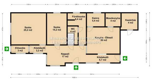 A Lévai Ingatlan és Hiteliroda megvételre kínál Békéscsabán ( Fényesen) egy jó állapotú családi házat. Az ingatlan 1960-as években épült, vegyes (vályog+tégla) falazattal. Az épület az elmúlt években folyamatos felújításon esett át, de igény szerint tovább lehet csinosítgatni. Főbb jellemzők: - Beretta kombi gázkazán illetve vegyes tüzelésű kazán biztosítja a fűtést, a szobákban radiátor hőleadókkal, a többi helyiségben pedig padlófűtéssel. A meleg vizet szintén ez a kazán álltja elő, de villanybojler rákötésére is van lehetőség. - A külső nyílászárókat (fa ablakok és bejárati ajtókat) kicserélték. - Új fürdőszoba lett kialakítva ( kádas, ülőpadkás zuhanyzós). - A víz- illetve villanyvezetékeket is teljeskörűen kicserélték (3 * 16 A). - Összközműves, tehermentes! A telek mérete 2923 m2, méretéből adódóan kertészkedésre, állattartásra is alkalmas. Az öntözéshez ásott- és fúrott kút is rendelkezésre áll, illetve a telek végében fut a Kígyósi-főcsatorna. Melléképületek is vannak. Az előkertes ingatlannak három bejárata van. Helyiségek: nappali+ 2 szoba, konyha - étkező, közlekedő, fürdőszoba, WC, kamra, mosókonyha (WC-vel), kazánház. Az egyik szoba felújítása csak részben valósult meg, a befejezés az új tulajdonosra vár. Viszonylag rövid határidővel birtokba vehető, részletekért hívjon bizalommal!