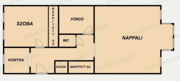 Kecskemét belvárosában, a Füzes utcában eladó egy fiatal építésű társasház I. emeletén található, 60 nm-es tégla lakás. Az ingatlan rendezett jogi hátterű, tehermentes és azonnal birtokba vehető. Műszaki adatok és paraméterek: Alapterület: 60 nm. Elrendezés: Nappali + 1 szoba, konyha, fürdőszoba, különálló WC. Nyílászárók: Modern, hőszigetelt műanyag ablakok. Tárolás: Beépített szekrények biztosítják a helykihasználást. Tájolás: Világos, jó benapozottságú belső terek. Fűtés: Gáz-cirkó rendszer (Saunier Duval kazán). Garázs vásárlási lehetőség: Az ingatlanhoz megvásárolható egy 15 nm-es, elektromos kapuval felszerelt garázs a társasház udvarán. Irányár: 10,5 millió Ft. Lokáció és hasznosítás: Az ingatlan központi elhelyezkedése és az I. emeleti szintkülönbség miatt kiváló választás: Saját részre: Kényelmes megoldás idősebb korosztály számára. Befektetésre: Magas bérbeadhatósági potenciál a belvárosi elhelyezkedésnek köszönhetően. Az ingatlan kizárólag a FOCUS INGATLAN kínálatában elérhető. Megtekintéssel kapcsolatban keressen bizalommal!