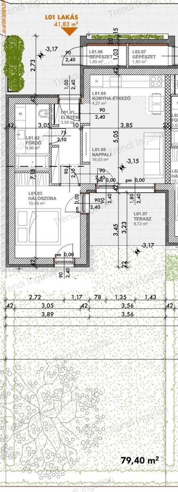 Győr-Szabadhegy mellékutcájában új építésű 28 lakásos társasházban különböző alapterületű lakások eladók. A modern társasházban nappali + 1 szobás, nappali + 2 szobás és nappali + 3 szobás lakások kerülnek kialakításra. A földszinti lakások kertkapcsolattal és terasszal, az emeleti lakások erkéllyel, galériával és tetőterasszal, a penthouse lakások tetőterasszal rendelkeznek. A meghirdetett földszinten található 39,98 nm-es lakásban amerikai konyhás nappali, szoba, fürdőszoba és előtér található. Nappaliból 8,72 nm-es terasz és 79,40 nm-es kertkapcsolat nyílik. A lakás fűtéskész ára: 48.990.000 Ft. Kulcsrakész befejezés kérhető. Gépkocsibeállló ára: 2.900.000 Ft Fedett gépkocsibeálló ára: 4.900.000 Ft Lehetőség van tároló vásárlására is, ára: 3.500.000 Ft – 3.900.000 Ft A társasház 30 cm-es falazóelemből, 15 cm-es homlokzati hőszigeteléssel épül. A homlokzati műanyag nyílászárók 3 rétegűek. Az ingatlanok fűtése kondenzációs gázkazánnal történik, lakásonként egyedi hőmennyiségmérővel és hőmérséklet szabályozó termosztáttal, hőleadás padlófűtéssel. Az ár 1 db klímaelőkészítést tartalmaz. Várható átadás: 2027 tavasz Bővebb információkért forduljon hozzám bizalommal. Hétköznap és hétvégén is várom hívását! Díjmentes, bankfüggetlen hitelügyintézéssel állunk rendelkezésére. A hirdetésben feltüntetett képek illusztrációk.