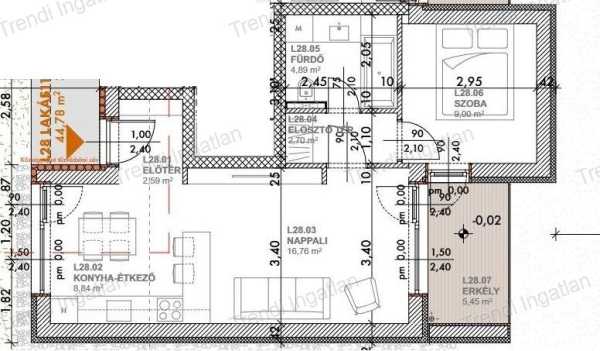 Győr-Szabadhegy mellékutcájában új építésű 28 lakásos társasházban különböző alapterületű lakások eladók. A modern társasházban nappali + 1 szobás, nappali + 2 szobás és nappali + 3 szobás lakások kerülnek kialakításra. A földszinti lakások kertkapcsolattal és terasszal, az emeleti lakások erkéllyel, galériával és tetőterasszal, a penthouse lakások tetőterasszal rendelkeznek. A meghirdetett földszinten található 44,78 nm-es lakásban amerikai konyhás nappali, szoba, fürdőszoba és előtér található. Nappaliból 5,45 nm-es terasz nyílik. A lakás fűtéskész ára: 49.990.000 Ft. Kulcsrakész befejezés kérhető. Gépkocsibeállló ára: 2.900.000 Ft Fedett gépkocsibeálló ára: 4.900.000 Ft Lehetőség van tároló vásárlására is, ára: 3.500.000 Ft – 3.900.000 Ft A társasház 30 cm-es falazóelemből, 15 cm-es homlokzati hőszigeteléssel épül. A homlokzati műanyag nyílászárók 3 rétegűek. Az ingatlanok fűtése kondenzációs gázkazánnal történik, lakásonként egyedi hőmennyiségmérővel és hőmérséklet szabályozó termosztáttal, hőleadás padlófűtéssel. Az ár 1 db klímaelőkészítést tartalmaz. Várható átadás: 2027 tavasz Bővebb információkért forduljon hozzám bizalommal. Hétköznap és hétvégén is várom hívását! Díjmentes, bankfüggetlen hitelügyintézéssel állunk rendelkezésére. A hirdetésben feltüntetett képek illusztrációk.