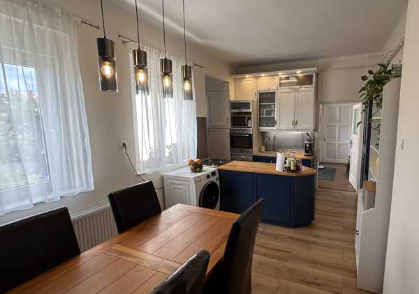 Eladásra kínáljuk Pécsett, a Semmelweis utcában 105 nm-es II. emeleti, tágas terekkel rendelkező polgári lakásunkat, egy 4 lakásos társasházban. Szintenként csupán 1 lakás található. Az ingatlan mindenre kiterjedő felújításon esett át - villanyvezetékek, komplett fűtési rendszer, Bosch kondenzációs gázkazán, padlófűtés, inverteres hűtő-fűtő klíma. A rezsiköltség a lakás méretéhez képest igen alacsony. A lakást két külön nyíló szoba ,nappali, konyha-étkező, fürdőszoba, wc és egy hangulatos terasz alkotja. Részben bútorozottan kínáljuk eladásra: a hálószobában található hatalmas faltól falig tartó beépített szekrény (400x300x60cm) az előszobabútor és a konyhabútor a vételár részét képezik, a konyha gépesítése pedig megbeszélés tárgya. A lakáshoz tartozik az alagsorban egy saját tároló, és egy, a lakás méretével megegyező padlás, amit lépcsőházból lehet megközelíteni. A közös használatú kert kb. 500 nm, rendezett, pihenésre tökéletes. A parkolás az utcán megoldott, gyalogtávolságra garázs bérleti szerződés átadható, nagyon kedvező áron. A közelben található uszoda, park, buszmegálló, játszótér, kisbolt, gyógyszertár, orvosi rendelők, iskola, óvoda, és a belváros is 5-10 perc alatt gyalogosan elérhető. A környék kifejezetten kedvelt, így befektetési lehetőségnek is kiváló, könnyen és gyorsan kiadható az egyetemek és a belváros közelsége miatt is. Az ingatlan tehermentes, és megfelel a 3%-os Otthon Start hitel feltételeinek.
